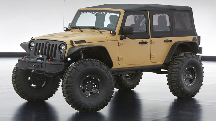 Soll es auf Sand zügig vorwärts gehen, bietet sich der Wrangler Sand Trooper II mit einem 5,7 Liter großen Hemi-V8 an. Weitere Modifikationen beinhalten 40-Zoll-Räder sowie neue Vorder- und Hinterachsen.