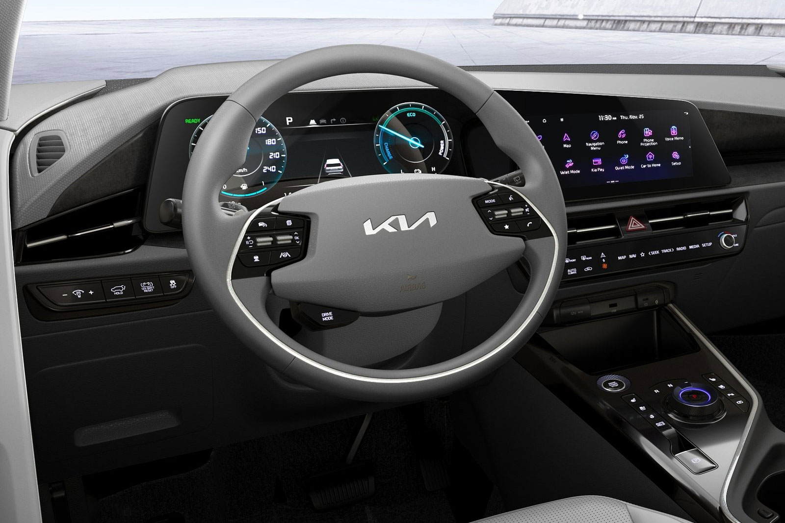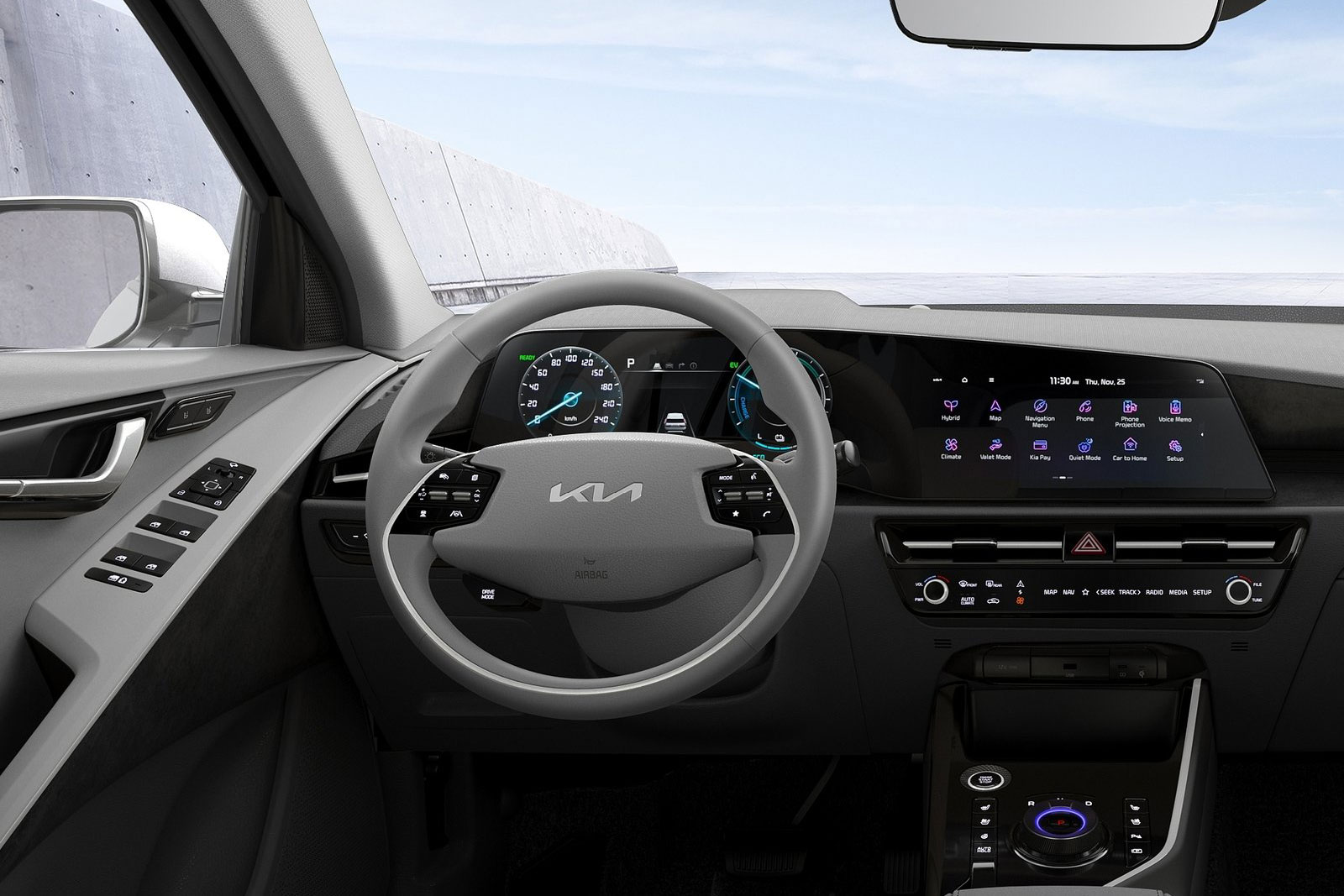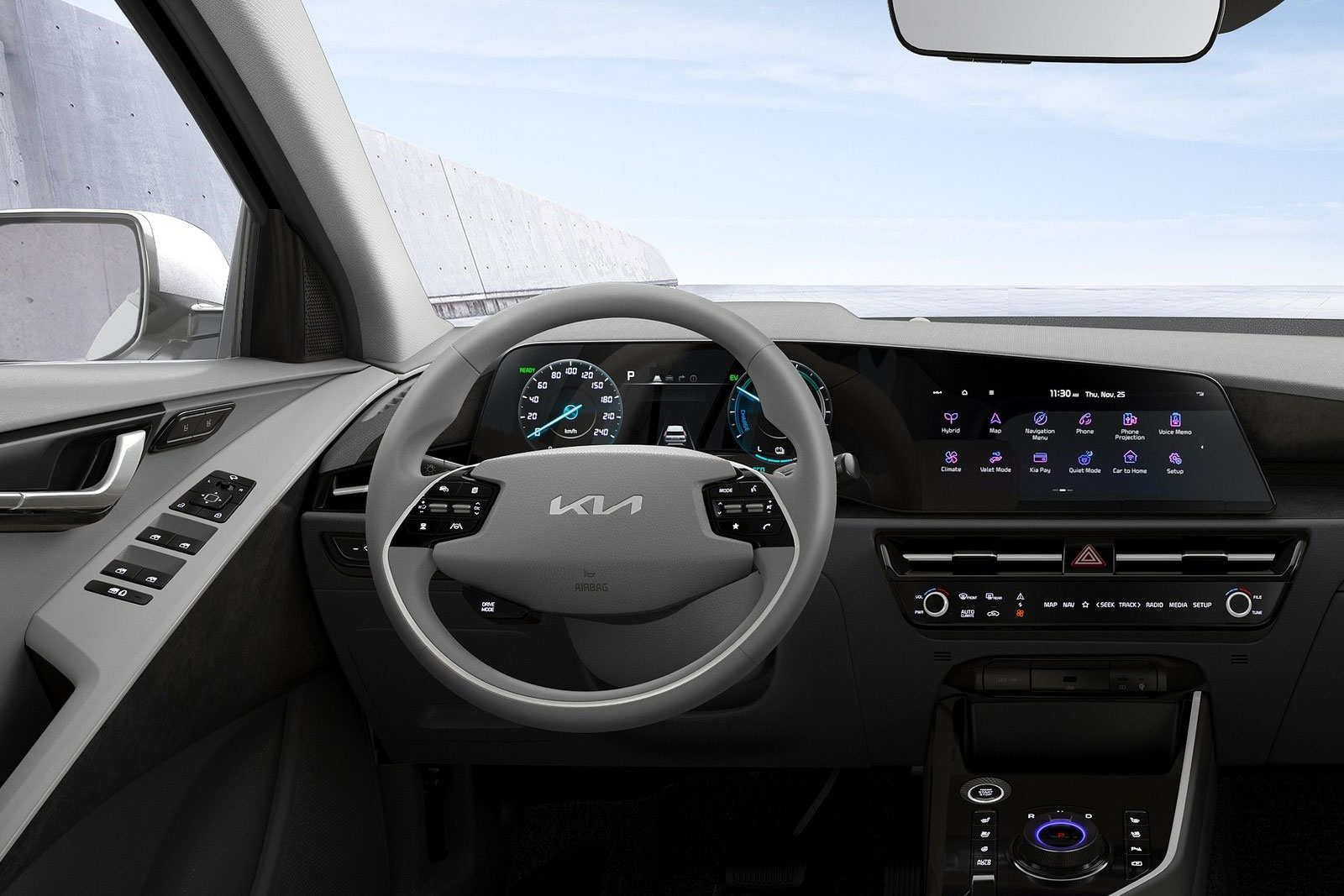 Hinter dem neuen Außendesign des 2022er Niro verbirgt sich ein ebenso neues Interieur. „Ergonomie und intuitive Bedienbarkeit“ prägen das Cockpit, so Kia. Das integrierte Panoramadisplay mit volldigitalem 26-cm-Kombiinstrument (10,25 Zoll, ausstattungsabhängig) liefert dem Fahrer alle wichtigen Fahrinformationen.