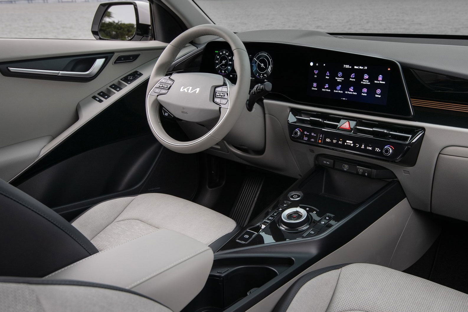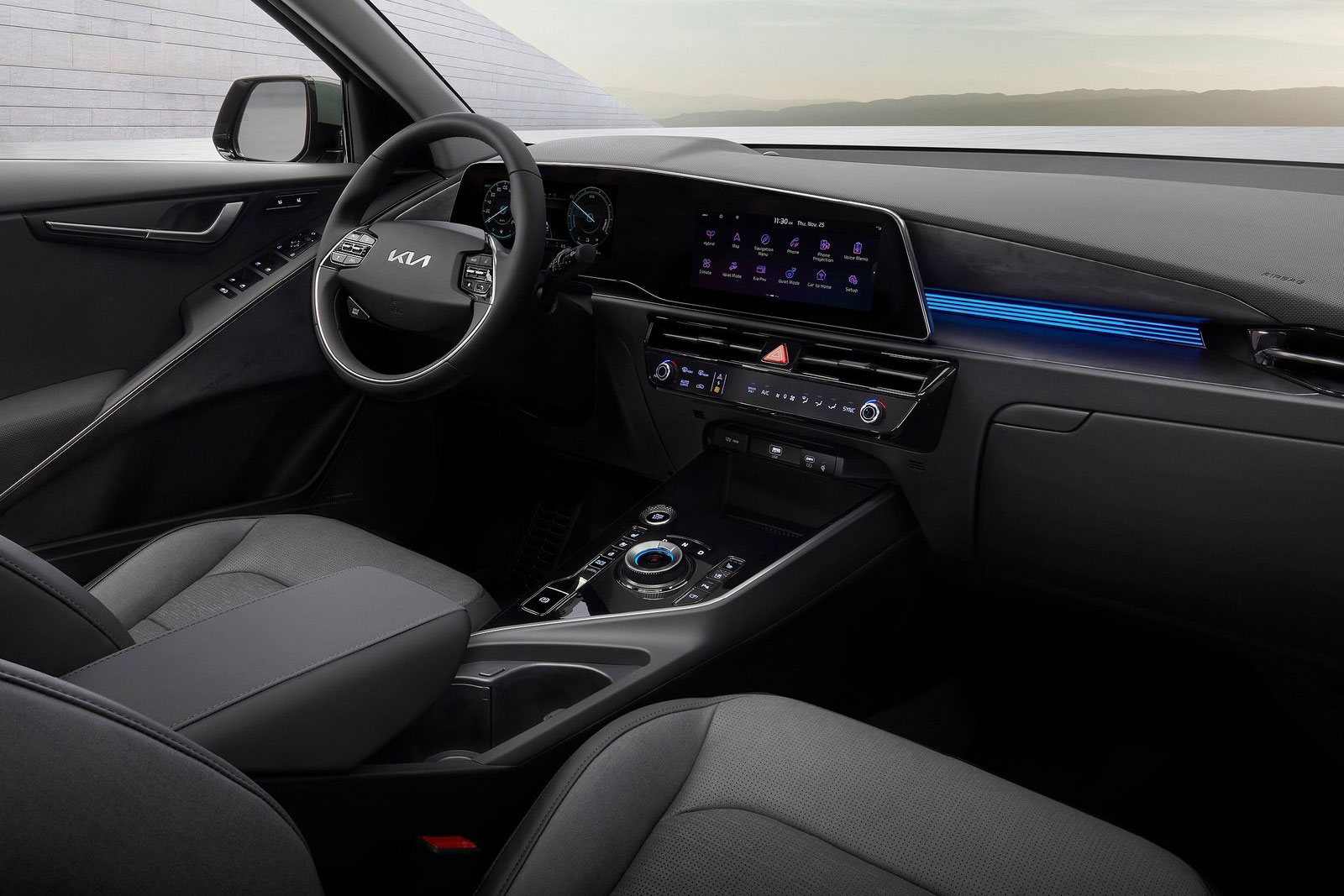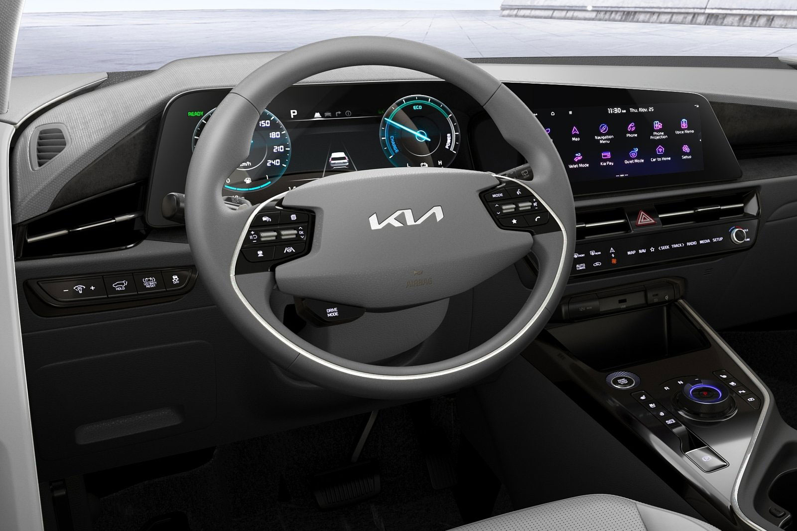 Hinter dem neuen Außendesign des 2022er Niro verbirgt sich ein ebenso neues Interieur. „Ergonomie und intuitive Bedienbarkeit“ prägen das Cockpit, so Kia. Das integrierte Panoramadisplay mit volldigitalem 26-cm-Kombiinstrument (10,25 Zoll, ausstattungsabhängig) liefert dem Fahrer alle wichtigen Fahrinformationen.