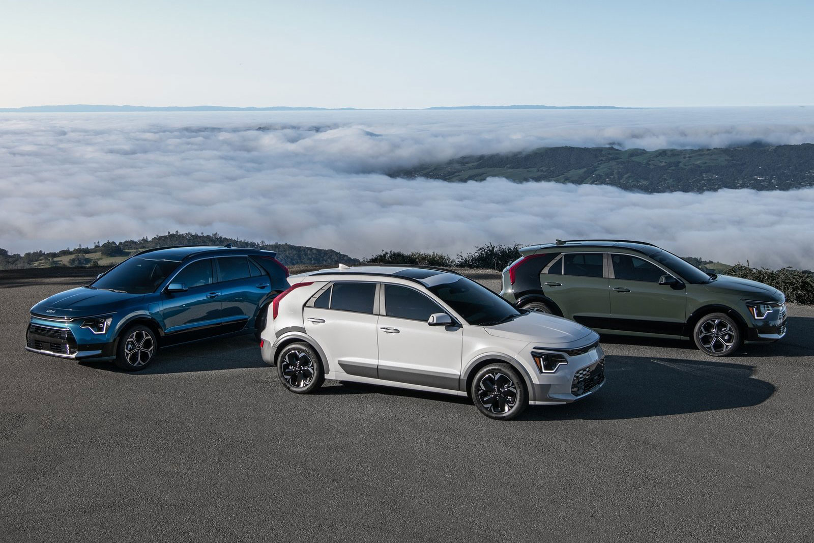 Alle Varianten des neuen Niro werden in den drei aufeinander aufbauenden Ausführungen Edition 7, Vision und Spirit angeboten. Die Basisversion beinhaltet serienmäßig bereits Klimaautomatik, Sitzheizung vorn, beheizbares Lenkrad, Audiosystem mit 20,2-cm-Touchscreen und Smartphone-Integration, Bluetooth-Freisprecheinrichtung mit Spracherkennung, USB-Ladebuchsen vorn und im Fond, elektronische Parkbremse, Rückfahrkamera, Parksensoren hinten, Geschwindigkeitsregelanlage, Dämmerungssensor, beheizbare Außenspiegel, 16-Zoll-Leichtmetallfelgen (beim EV 17 Zoll) und Dachreling.