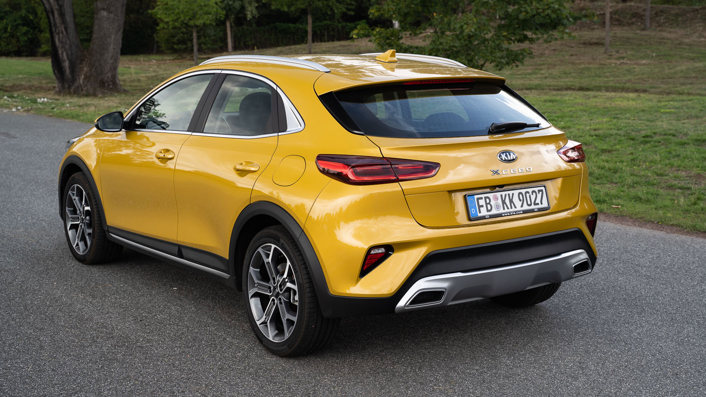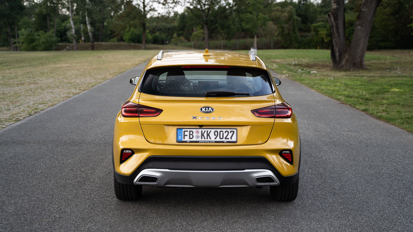 {1}Das Design ist sicher eine der größten Stärken des Kia Xceed. Nicht nur dank der auffälligen Farbe bringt der Koreaner Leben in die Kompaktklasse. Dabei spielt er nicht einmal die bullige Offroad-Karte, sondern überzeugt durch eine schlüssige Formgebung.