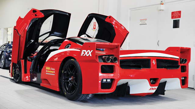 {werbung}Der FXX Evoluzione ist die schärfste Ausbaustufe der Ausbaustufe eines der Supersportwagen schlechthin, dem Ferrari Enzo Ferrari (interne Bezeichnung: F140). Verzeichnete bereits der „normale“ FXX eine satte Leistungssteigerung um 140 auf 800 PS, wurde später das Evolutions-Paket für satte 190.000 Euro angeboten, mit dem der FXX zum FXX Evoluzione hochgerüstet werden konnte. Der knapp 6,3 Liter große V12 leistete nach Erhöhung der Maximaldrehzahl auf nunmehr 9500 U/min ganze 860 PS, das neue Getriebe verfügte über noch kürzere Schaltzeiten (60 ms statt 80 ms) und Aerodynamik sowie Fahrwerk wurden an die neue Leistung angepasst. Auch der Evoluzione hatte selbstredend keine Straßenzulassung (angeblich existiert lediglich ein Exemplar). Mit Erwerb des 1,5 Millionen Euro teuren FXX war stattdessen die Teilnahme an einer gewissen Anzahl von Trackdays inkludiert.