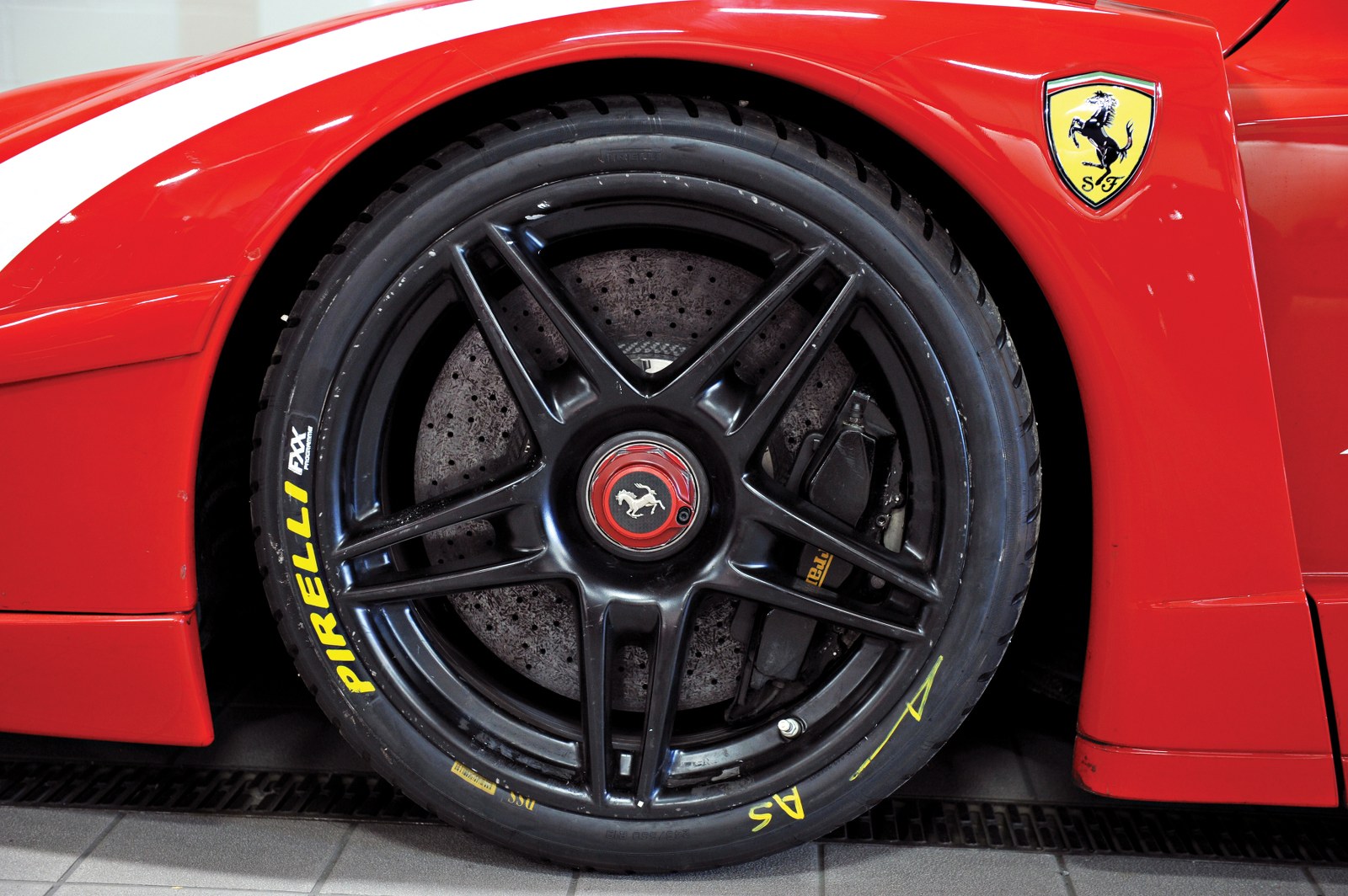 {werbung}Der FXX Evoluzione ist die schärfste Ausbaustufe der Ausbaustufe eines der Supersportwagen schlechthin, dem Ferrari Enzo Ferrari (interne Bezeichnung: F140). Verzeichnete bereits der „normale“ FXX eine satte Leistungssteigerung um 140 auf 800 PS, wurde später das Evolutions-Paket für satte 190.000 Euro angeboten, mit dem der FXX zum FXX Evoluzione hochgerüstet werden konnte. Der knapp 6,3 Liter große V12 leistete nach Erhöhung der Maximaldrehzahl auf nunmehr 9500 U/min ganze 860 PS, das neue Getriebe verfügte über noch kürzere Schaltzeiten (60 ms statt 80 ms) und Aerodynamik sowie Fahrwerk wurden an die neue Leistung angepasst. Auch der Evoluzione hatte selbstredend keine Straßenzulassung (angeblich existiert lediglich ein Exemplar). Mit Erwerb des 1,5 Millionen Euro teuren FXX war stattdessen die Teilnahme an einer gewissen Anzahl von Trackdays inkludiert.