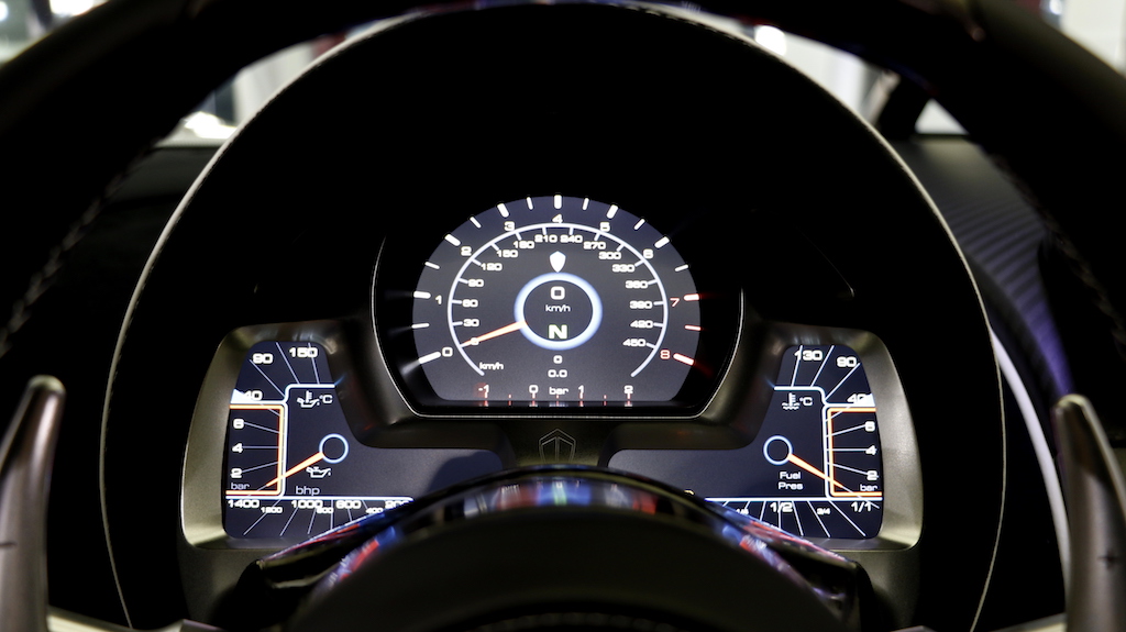 Und so hat sich der Besitzer des roten „One of 1“, der auf der Messe in Genf steht, unter anderem folgende Spielereien ausgesucht: