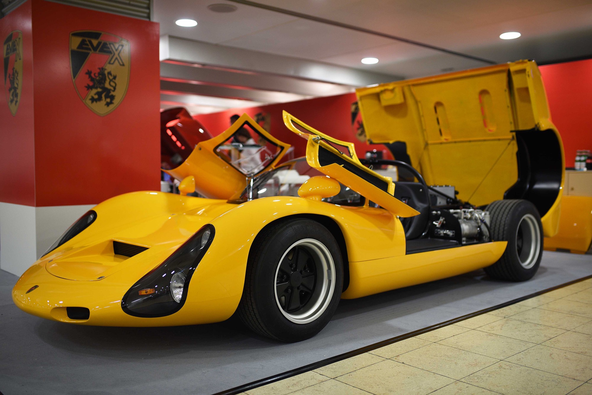 Doch im Falle des Kreisel EVEX 910e lohnt es sich, einen genaueren Blick auf das Konzept zu werfen, das dieser Tage auf der Techno Classica in Essen (noch bis zum 9. April) vorgestellt wird. Zunächst zur Geschichte und zur Namensgebung: der Porsche 910 war ein in lediglich 35 Exemplaren von der Porsche KG gebauter Rennwagen ohne Straßenzulassung. Er basierte auf dem sehr erfolgreichen Porsche 906 und war Ende der Sechziger Jahre in diversen Markenpokalen und Bergrennen siegreich unterwegs. Keine zehn Jahre nach dem Ende der Bauzeit begann der bis dato wenig bekannte Fahrzeughersteller EVEX mit dem Nachbau der seltenen Mittelmotorwagen und vermarktete diesen als EVEX Porsche 910 – lediglich vier Exemplare entstanden.