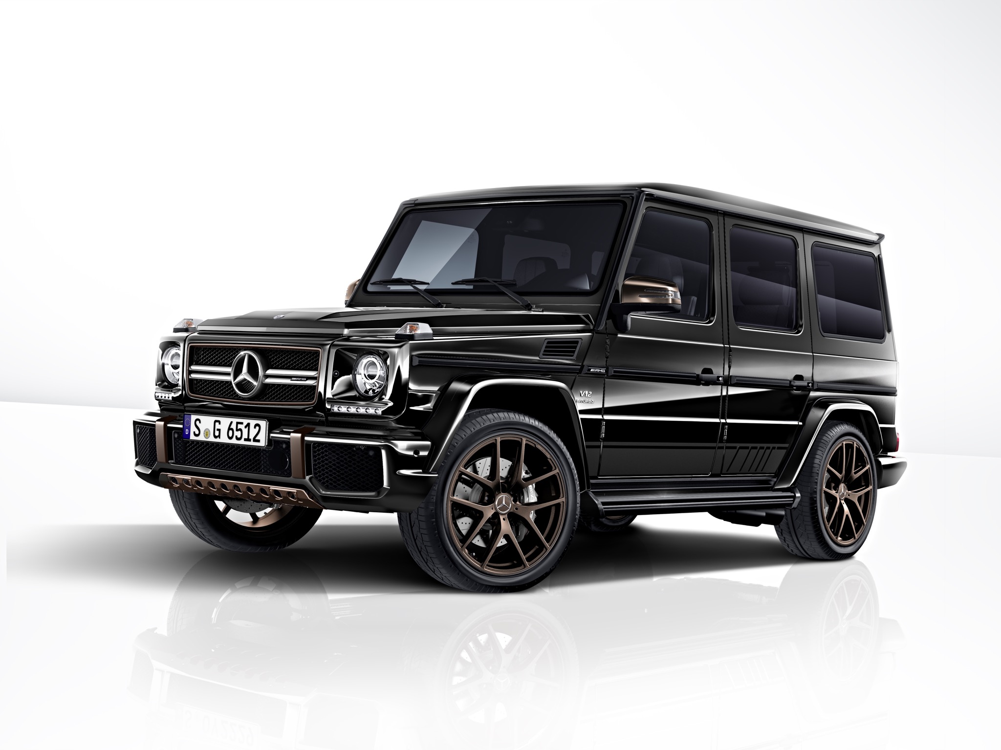 {1}Und dieser G 65 Final Edition ist wirklich etwas besonderes. Denn es wird ihn maximal 65 mal geben. Technisch hat sich ziemlich genau nichts geändert, der sechs Liter große V12-Biturbo leistet wie gewohnt 630 PS und 1.000 Newtonmeter Drehmoment. Für die Kraftübertragung zeichnet die 7G-Tronic verantwortlich. Dafür hebt sich der G 65 Final Edition in Details außen wie innen von den herkömmlichen Derivaten ab. Bronzefarbene 21-Zoll-Felgen sowie ein im selben Ton lackierter Unterfahrschutz, Stoßfänger und Kühlergrill zeigen, dass der Eigner dieses Gefährts sich einen von nur 65 Stück gesichert hat und bereit war, dafür noch einmal deutlich mehr Scheine auf den Tresen zu blättern als ohnehin schon nötig waren. Im Innenraum findet sich Bronze in den Carbon-Zierteilen wieder, ansonsten dominieren schwarze Lederverkleidungen und hellbraune Ziernähte. Der Preis? Ach, wir wiesen ja bereits darauf hin: 310.233 Euro und somit rund 35.000 Euro mehr als für den Standard-G 65 aufgerufen wird.