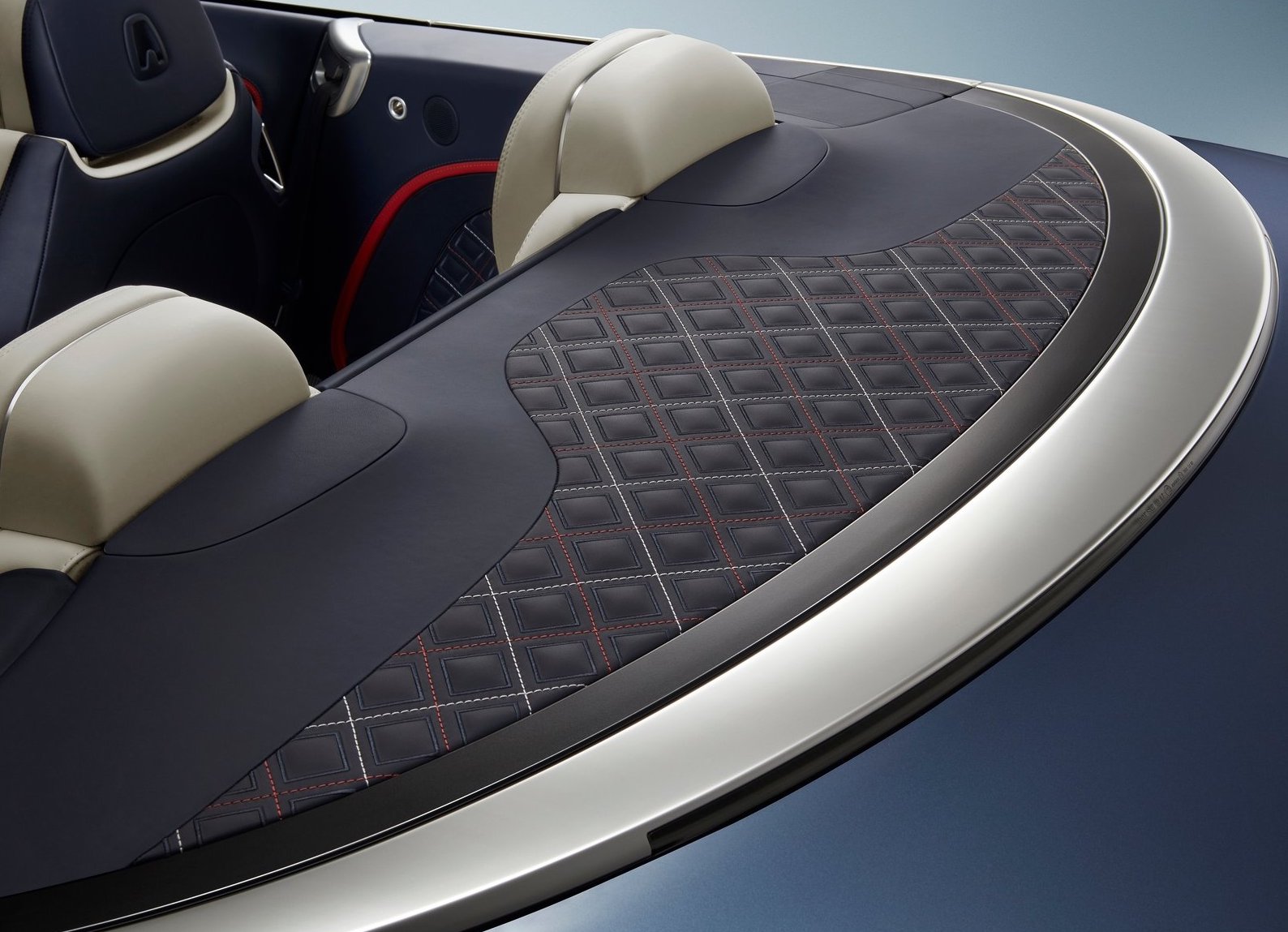 Dazu gibt es 22-Zoll-Felgen mit kugelgelagerten Nabendeckeln, damit das B auch in voller Fahrt zu lesen ist. Wie es sich für ein „bespoke“-Modell gehört kommt das Mulliner Cabrio mit 61 wählbaren Farben, unzählbaren Varianten für Leder und Holz, sieben verschiedenen Ambiente-Settings, einer echte Breitling im Armaturenbrett und jeder Menge Mulliner-Schriftzüge. Der Schlüssel wird übrigens mit zum Auto passenden Leder bezogen.