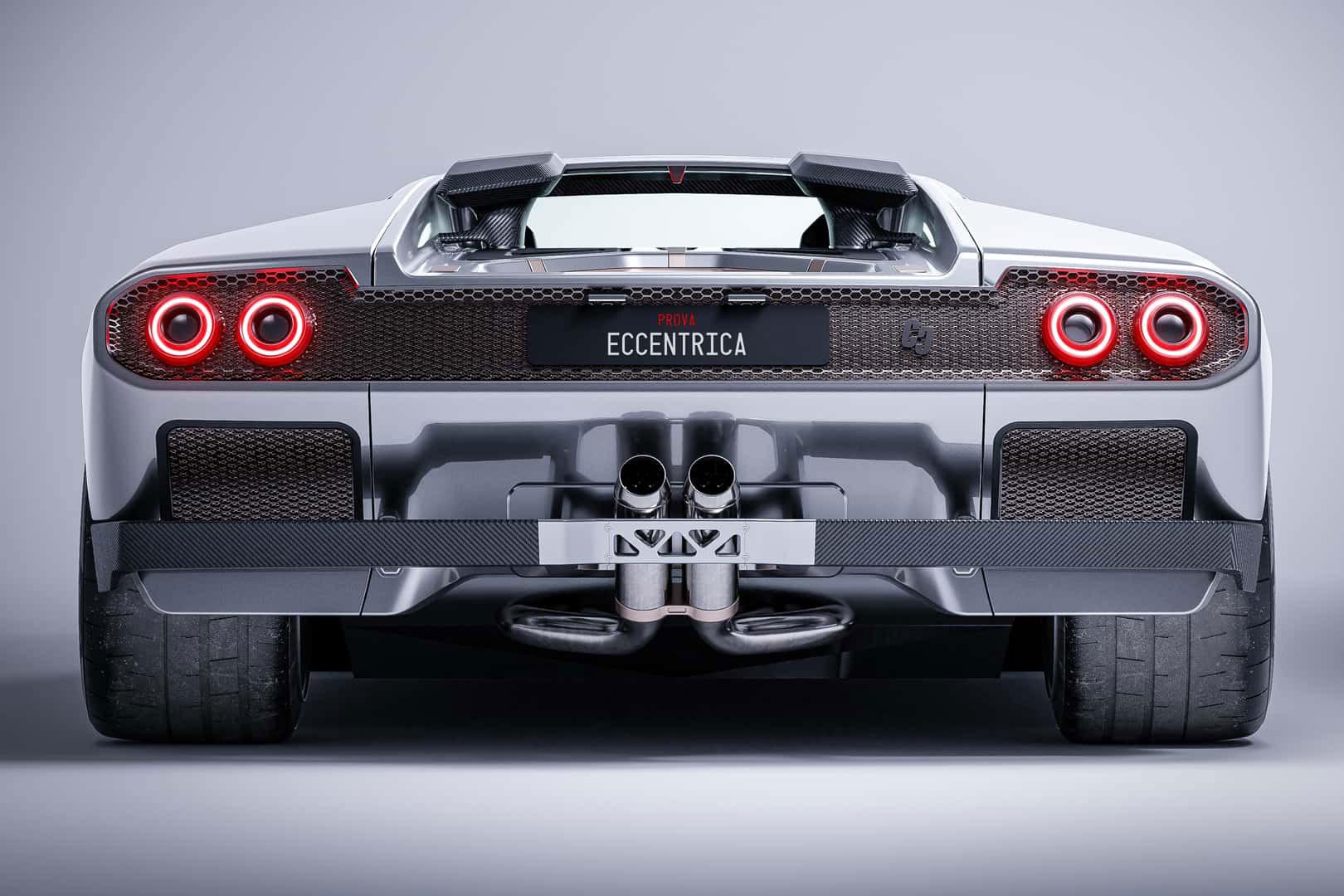 Eccentrica gibt eine Beschleunigung von 0-100 km/h in 3,5 Sekunden und eine Höchstgeschwindigkeit von 334,744 km/h an.