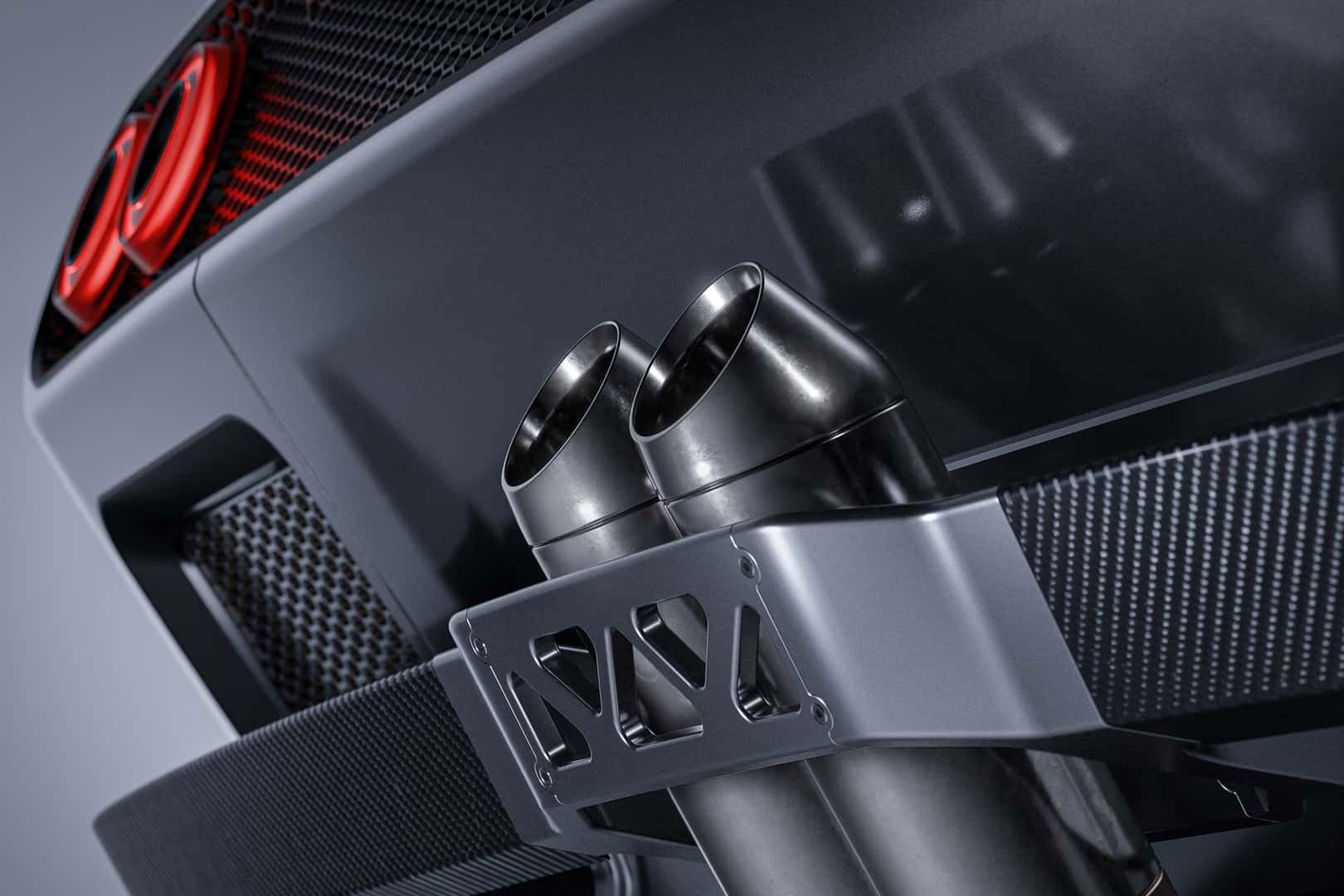 Die charakteristischen Klappscheinwerfer, mussten modernen LED-Scheinwerfern weichen, lassen sich aber in Anlehnung ans Original über einen Klappmechanismus öffnen und schließen. Eine deutliche Änderung musste auch das Heck über sich ergehen lassen. Zum Highlight werden hier die zentralen Endrohre einer Auspuffanlage von Capristo.