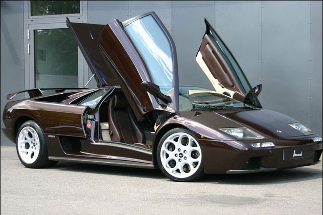 evocars-Mann Axel hat einmal mehr ein zum Verkauf stehendes Schmuckstück für uns ausgegraben. Im Meilen Werk in Düsseldorf hat Axel einen von nur 42 Mal gebauten Lamborghini Diablo VT 6.0 SE aus dem Jahre 2001 aufgespürt. Das zum Verkauf stehende Exemplar ist die „Nummer 4“ und wurde 2005 erstmals zugelassen. Auf dem Tacho stehen gerade einmal 2910 Meilen. Der Millennium-Bolzen mit dem Sechsliter-V12 im Heck dürfte also gerade einmal eingefahren sein. Zu was der für 189.900 Euro angepriesene Exot und direkte Vorgänger des Lamborghini Murciélago schon vor fast einem Jahrzehnt fähig war, liest sich so: Dank seiner 550 PS und 650 Newtonmeter knallt der Allrad-Sportler in 3,9 Sekunden auf Tempo 100 und ungehemmt weiter bis zur Höchstgeschwindigkeit von 335 km/h. Optional konnte damals sogar noch eine andere Übersetzung geordert werden, die das Sondermodell (SE) bis auf Tempo 359 rennen lies.