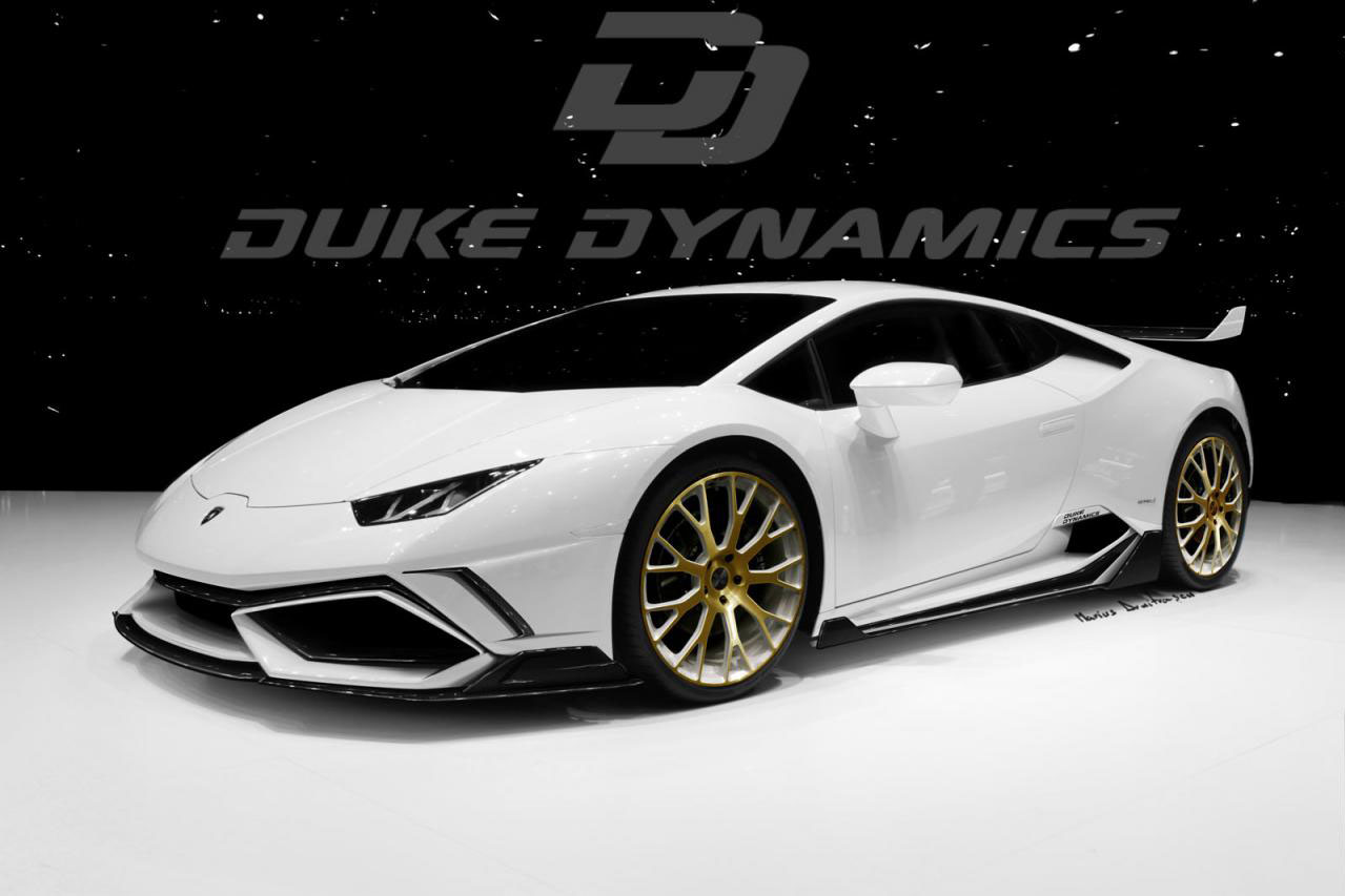 Nach und nach treten die Tuner mit ihren ersten zaghaften Zubehörangeboten für den neuen Lamborghini Huracan auf die Bühne und zeigen, wie der V10-Sportler aus ihrer Sicht auszusehen hätte. Auch das Team von Duke Dynamics möchte dem 610 PS starken Renner auf die Sprünge helfen – wenn auch nur optisch.