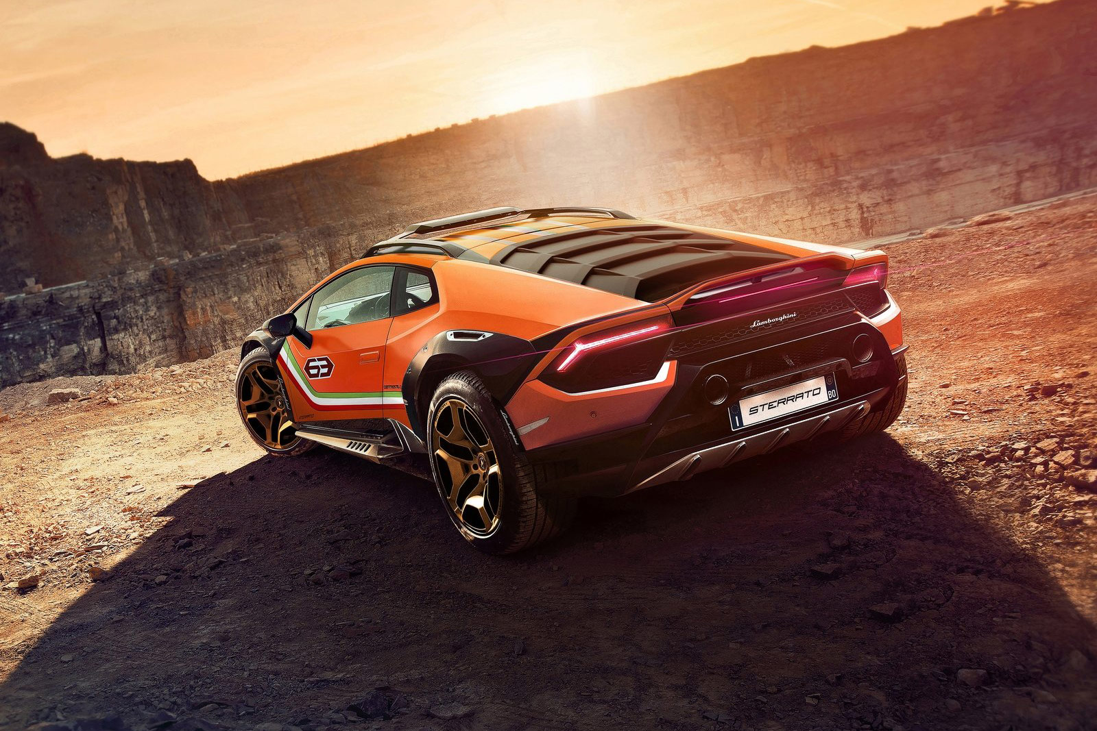 Der Sterrato ist für anspruchsvolle Einsatzbereiche konzipiert. Seine Erscheinung bringt seine beeindruckenden Geländefähigkeiten im Kontext eines Supersportwagens unmittelbar zum Ausdruck. Die Bodenfreiheit wurde um 47 mm erhöht, der Böschungswinkel wurde vorn um 1% verbessert und hinten um 6,5%.