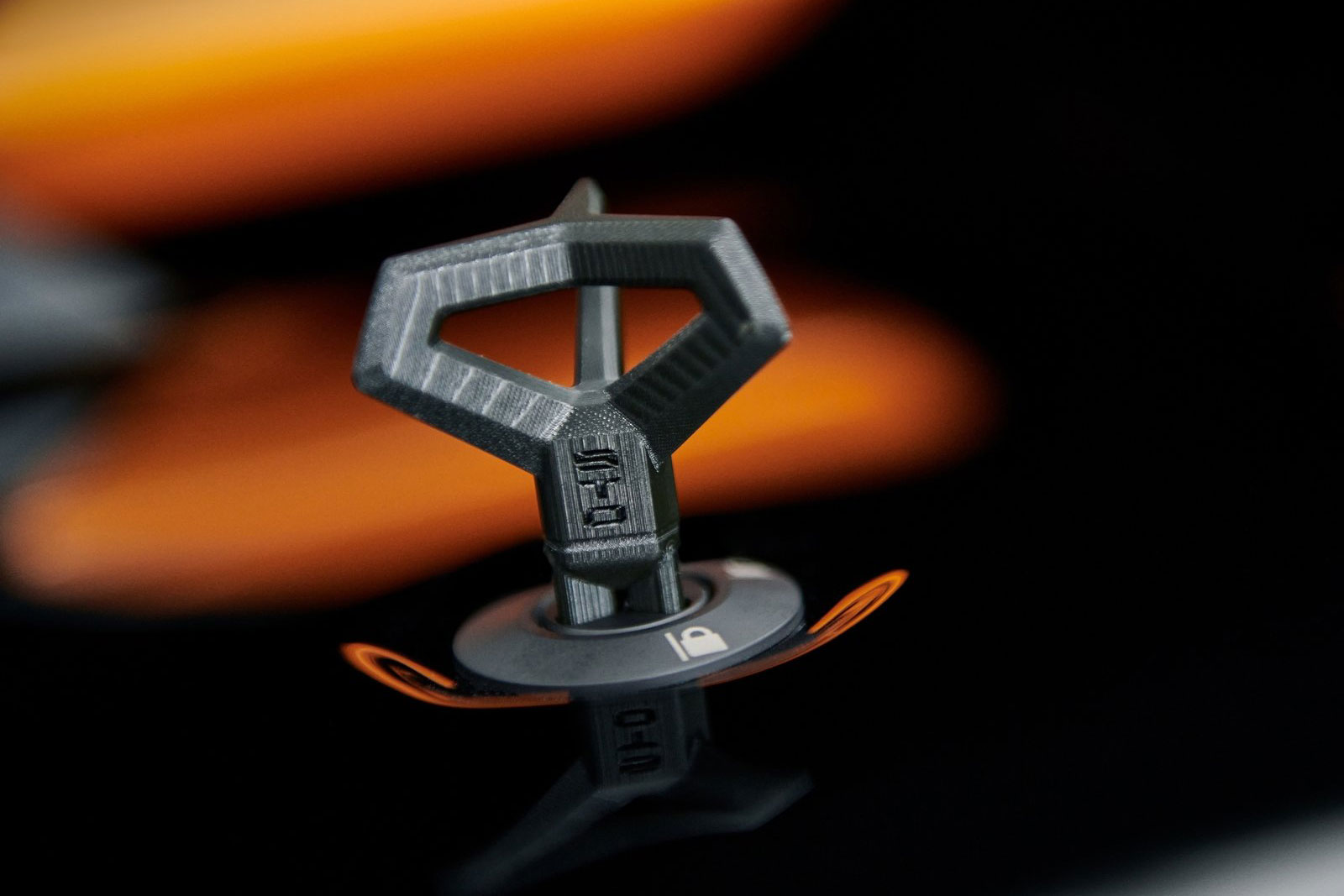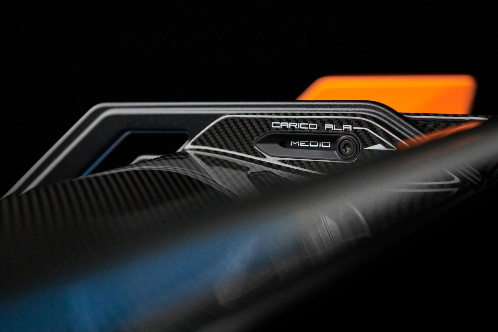 Der von Hand leicht verstellbare neue Heckflügel optimiert die aerodynamische Balance und den Luftwiderstand je nach Streckencharakteristik. Ein einfach geschlitzter Flügel mit doppeltem Profil ermöglicht es, das vordere Profilteil in drei Positionen zu verstellen, wodurch der Heckabtrieb verstärkt wird. Durch Verringerung des Spaltes zwischen vorderem und hinterem Profil wird der Druck auf der Oberseite erhöht, wodurch die Saugintensität und die Ausdehnung auf der Unterseite des vorderen Profils erhöht wird. Die aerodynamische Balance des Fahrzeugs kann somit um 13% verändert werden, wodurch der STO an unterschiedliche Fahrstile und -bedingungen angepasst werden kann.