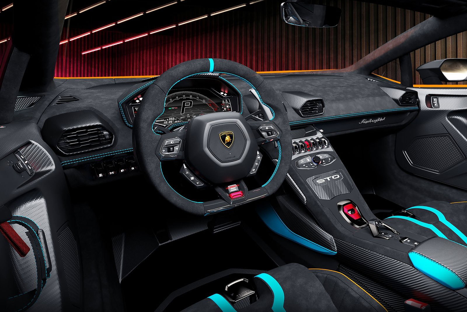 {1}Besitzer des Huracán STO können sowohl das Exterieur und als auch das Interieur ihres Fahrzeugs über das reichhaltige Ad Personam Programm vollständig individualisieren, mit unbegrenzten Kombinationen für Lackierung und Innenausstattung sowie rennsportmäßigen Designs. Das Konzept der Individualisierung ist dem Design des Huracán STO inhärent wie bei den Rennwagen in der Startaufstellung der Huracán Super Trofeo Serie. Die Markteinführungsfarben Blu Laufey (Blau) und Arancio California (Orange) sind ein Beispiel für den jungen und sportlichen Rennsportgeist des Huracán STO.