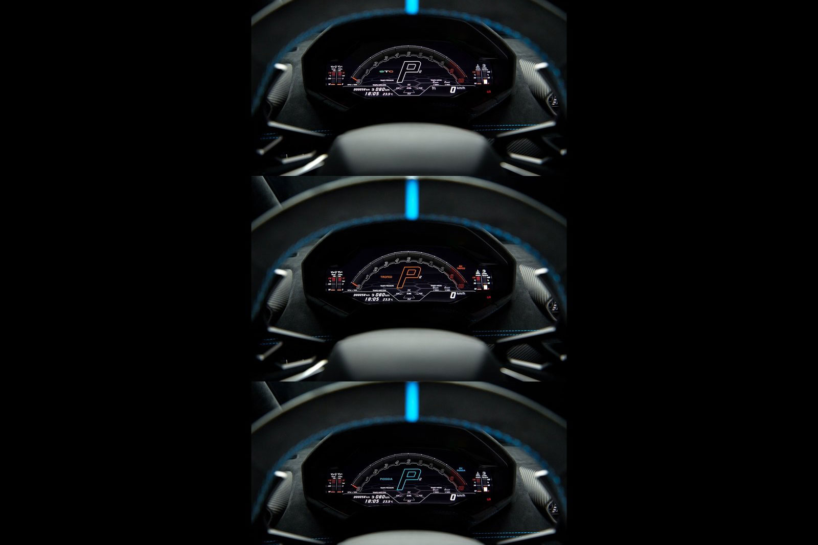 Eine neue HMI-Grafik (Human Machine Interface) zeigt auf dem Touchscreen des Huracán STO Informationen zu Fahrzeugfunktionen an, darunter die Fahrmodusanzeige, das LDVI-System, Reifendrücke und Bremsentemperaturen. Ein voll vernetztes Telemetriesystem ermöglicht dem Fahrer, der mit seinem Huracán STO auf der Rennstrecke unterwegs ist, seine Performance zu überwachen und aufzuzeichnen und die Daten mittels Lamborghini UNICA-App zu analysieren.