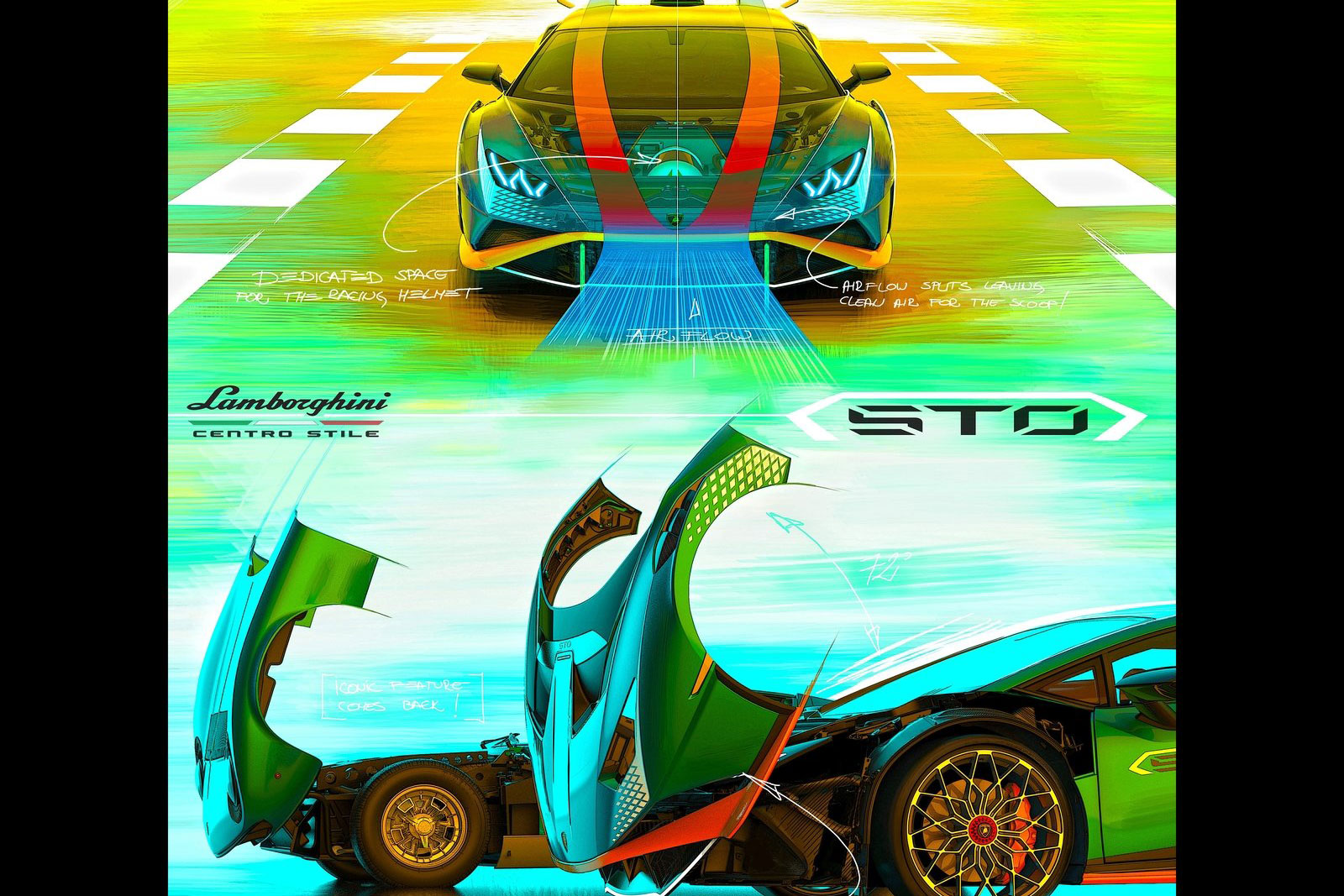 Jedes Detail des Huracán STO stützt sich auf die im Motorsport erforderliche aerodynamische Effizienz und die Leichtbautechnologien. Der Huracán STO ist das Ergebnis der Zusammenarbeit zwischen der Forschungs- und Entwicklungsabteilung von Lamborghini, Squadra Corse und dem Centro Stile.