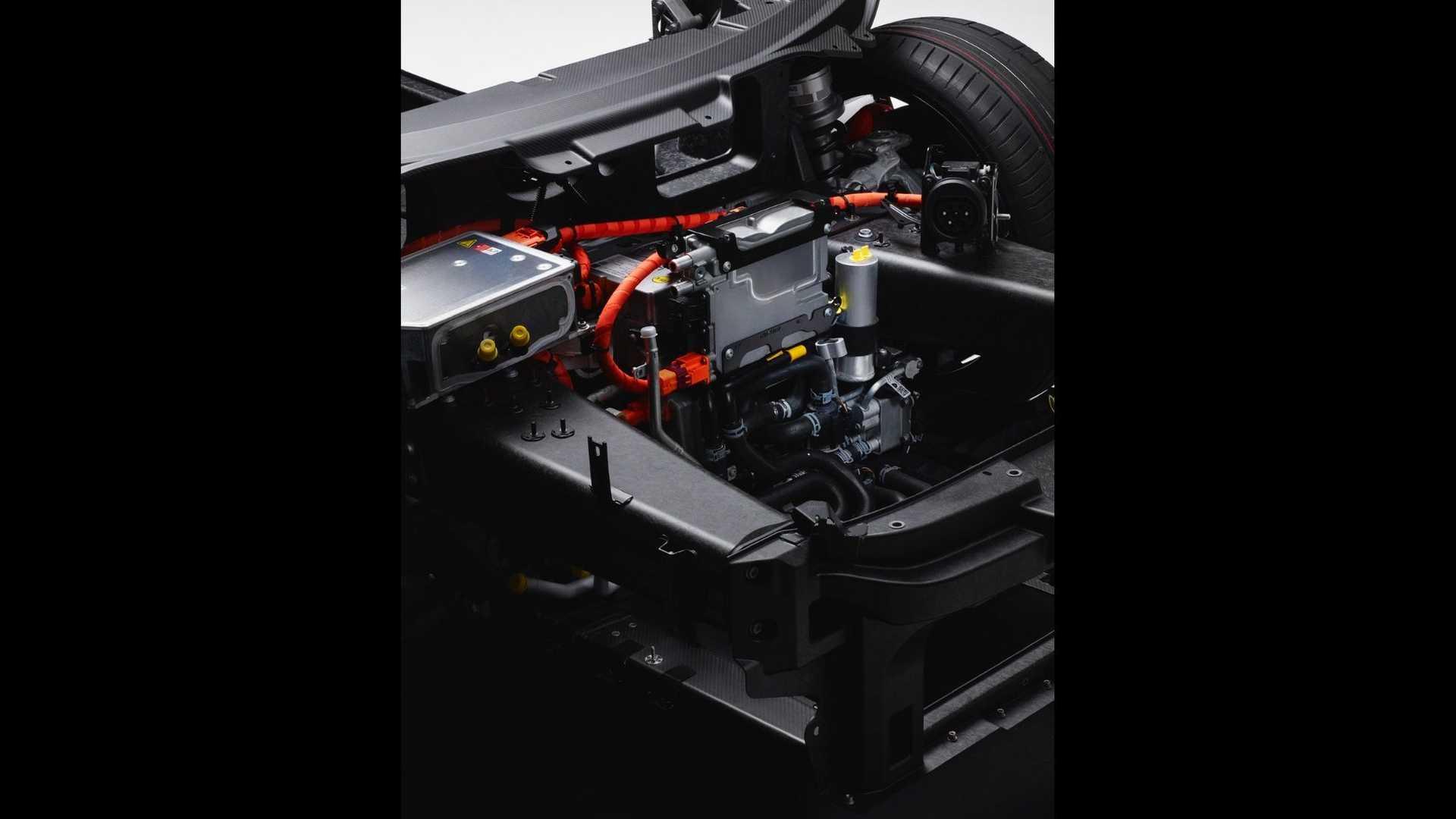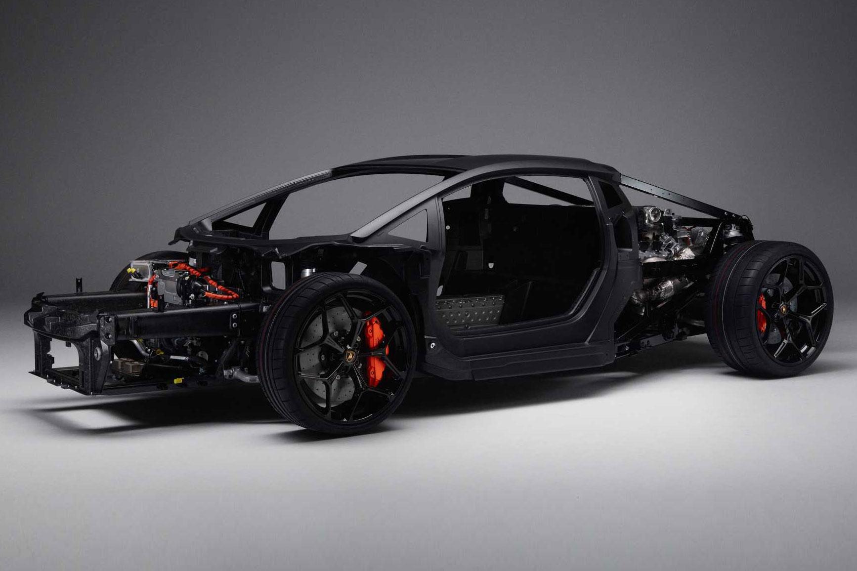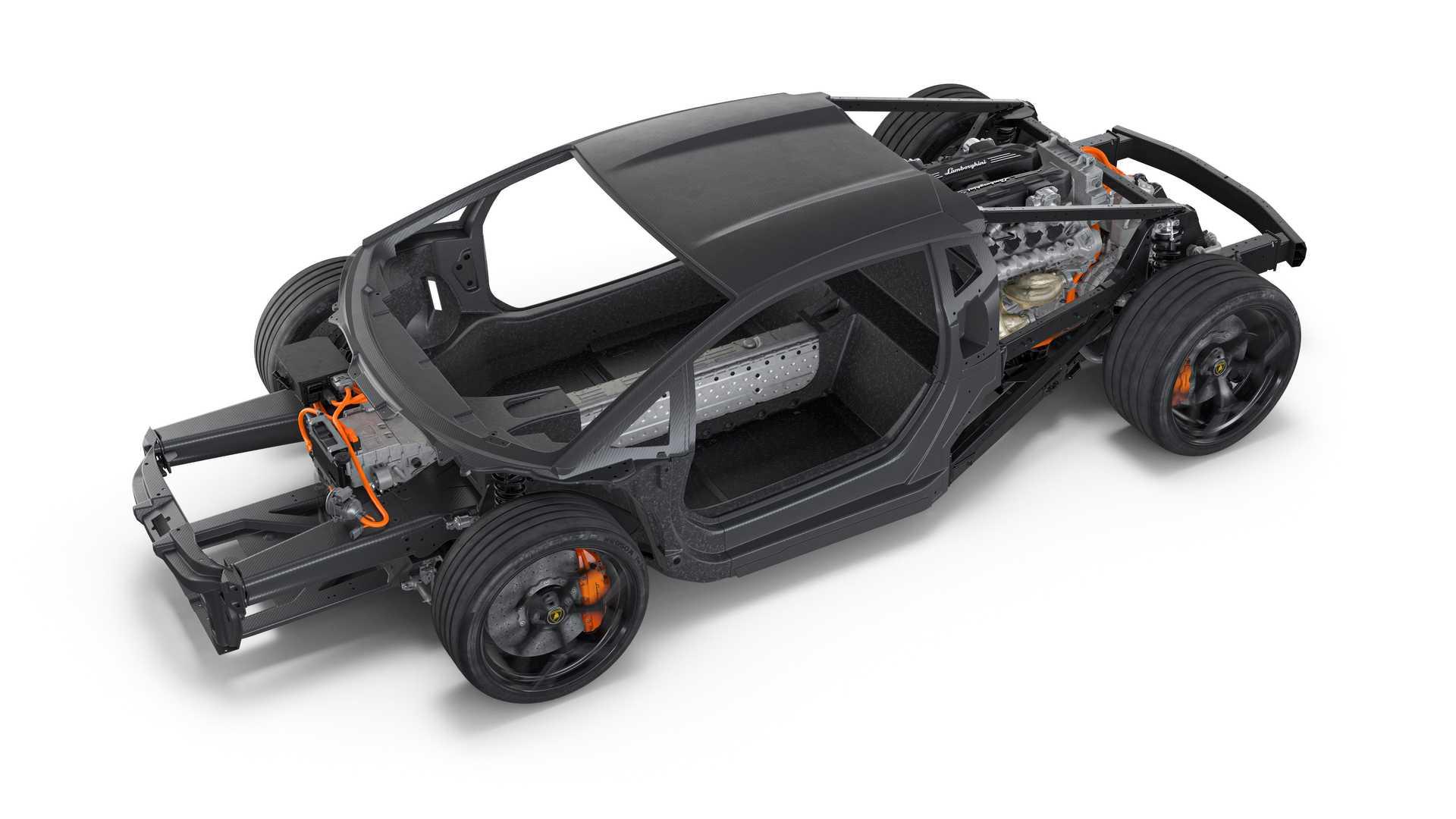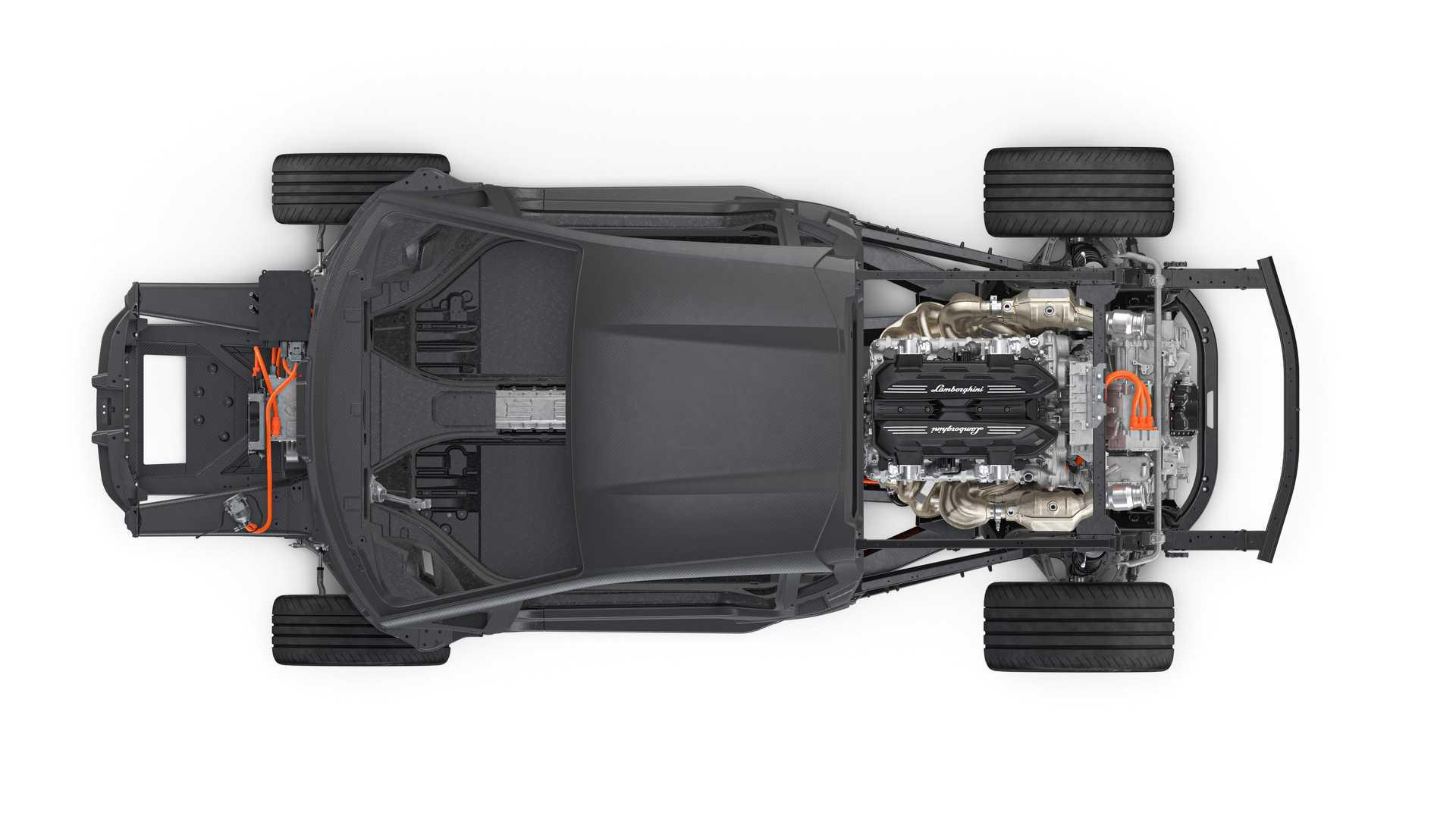 Zwei der Elektromotoren treiben jeweils ein Vorderrad an, der dritte E-Motor sitzt im Heck. Er startet den V12, unterstützt mit 150 PS und fungiert zudem als Generator für den im Tunneln zwischen den Insassen verbauten Akku. Dessen Kapazität beträgt 3,8 kWh und er ermöglicht es, dass der LB744 sogar komplett elektrisch fahren kann. Geladen werden kann der Akku extern mit bis zu 7 kW oder über Rekuperation. Lamborghini selbst bezeichnet den Supersportwagen als HPEV – als ein „High Performance Electrified Vehicle“. Nicht zu verwechseln mit einem schnöden PHEV (einem herkömmlichen Plug-in-Hybriden).