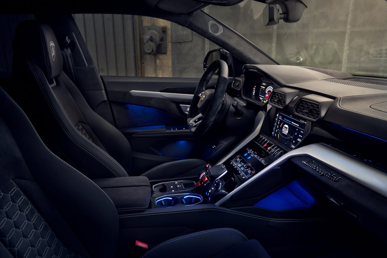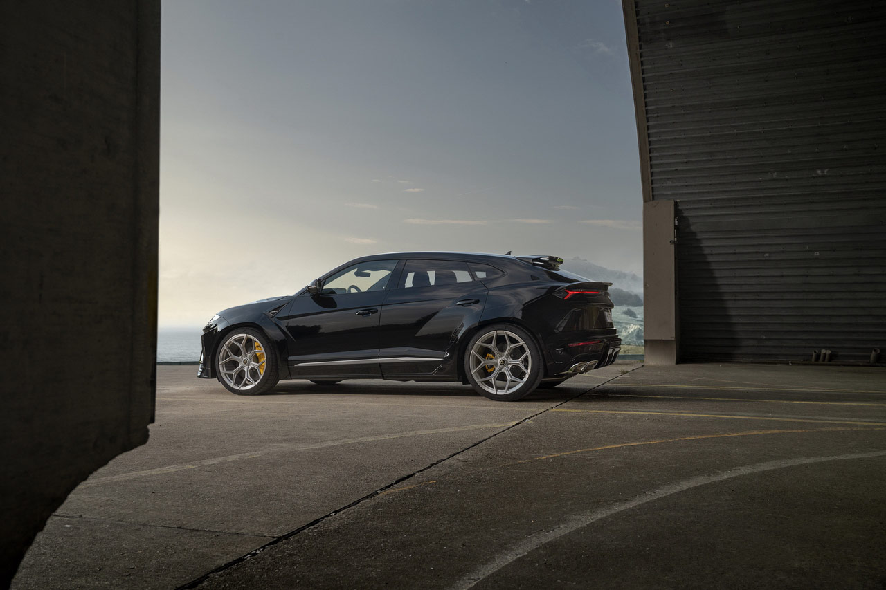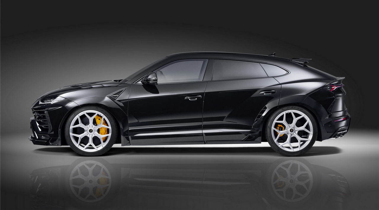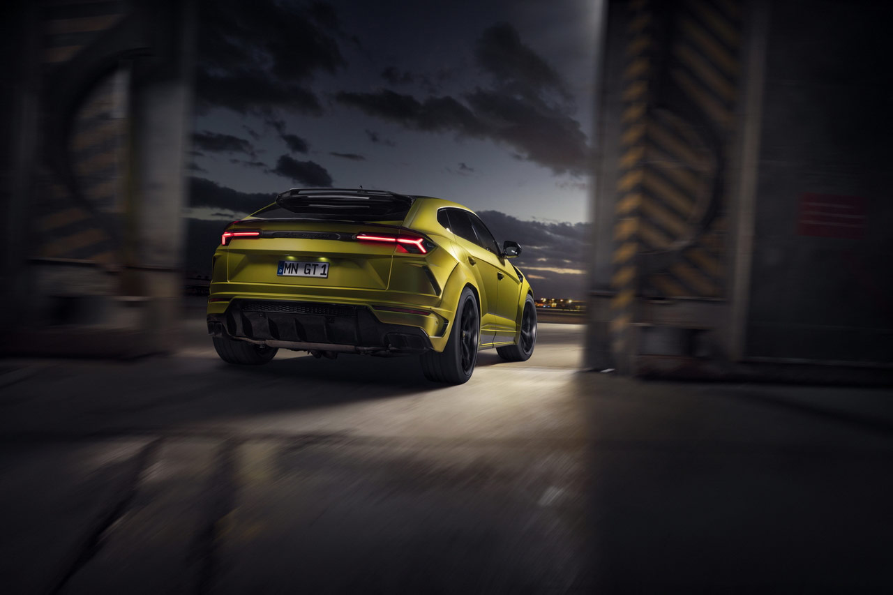 Mindestens genau so krawallig wir die Fahrleistungen des Urus aus dem Hause Novitec ist der Auftritt des Widebodykits, das auf den Namen „Esteso“ hört und das V8-SUV an der Vorderachse um zehn Zentimeter in die Breite zieht. Hinten sind es gar zwölf Zentimeter. Das Komplett-Kit besteht aus 14 Teilen und wird aus PUR-Rim gefertigt. Ergänzt werden kann es um diverse Teile aus Sichtcarbon. Schlussendlich werden noch gewaltige 23-Zoll-Felgen montiert, auf die 285/35 R 23 und 325/30 R 23 messende Reifen gezogen sind.