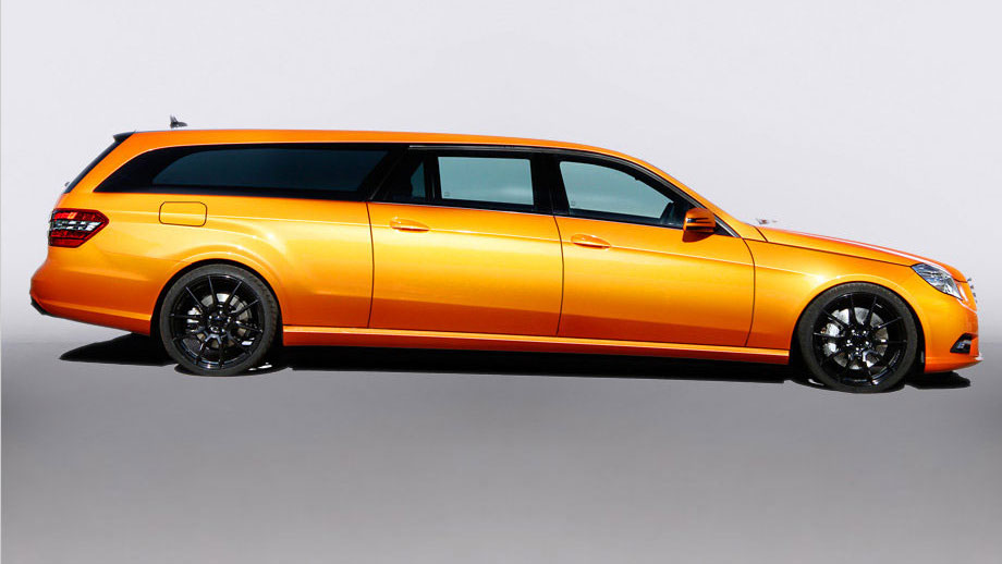 Wozu ist ein fast 5,80 Meter langes Mercedes E-Klasse T-Modell nütze? – und dann noch in dieser Farbe. Vielleicht als besonders auffällige XXL-Lümmelwiese für Frischverliebte oder „Gruppen“? Bestattungsunternehmer, die aus der „Schwarzen-Ecke“ raus wollen und dem Tod farbenfroher entgegen treten wollen? Wir wissen es nicht und rätseln einfach noch ein wenig weiter, wer Interesse an dem X-Orange von Karosseriebauer Binz haben könnte.