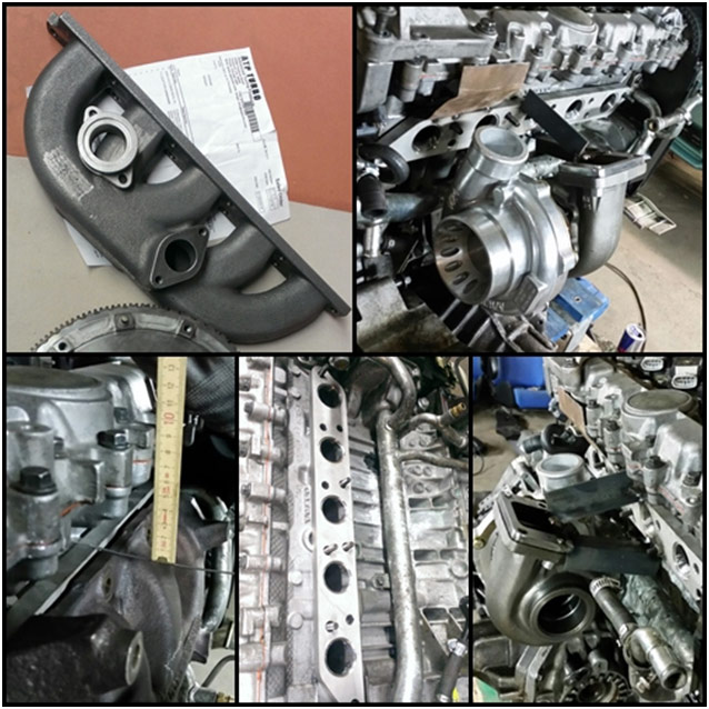 Nachdem nun der Krümmer da war, montierte ich diesen am Motor, zusammen mit dem Turbolader um die Leitungen für die Öl.- und Wasserkühlung am Turbo neu zu legen bzw. neu zu bauen. Dabei halfen mir die Jungs von GET CHARGED.