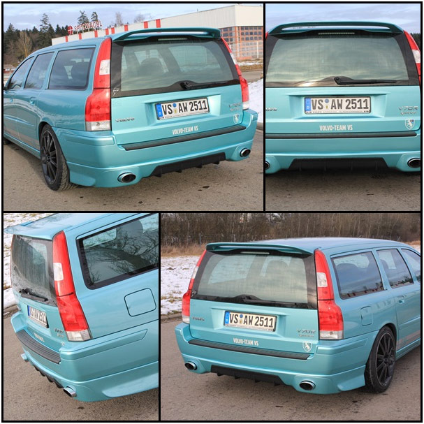 - Die Duplexauspuffanlage wurde extra für dieses Fahrzeug individuell angefertigt mit ovalen Endrohren von HEICO-SPORTIV (normalerweise gab es keine Duplexanlage für den V70R)