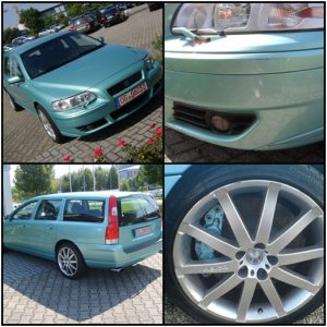 Im August 2008 habe ich den V70R mit einigen optischen Schäden gekauft, an Stoßstange vorne und hinten, sowie verschrammte Felgen. Danach folgte dann die Beseitigung der Schäden durch Neulackierung der Stoßstangen. Auch wurden die Felgen wieder in Stand gesetzt und in dem Original-Volvo-Lack „Sevillegrau“ lackiert. Am Fahrzeug ist sehr viel des offiziellen Volvo-Tuners „HEICO-SPORTIV“ verbaut, denn es wurde beim Tuner in Darmstadt/Weiterstadt so umgebaut.