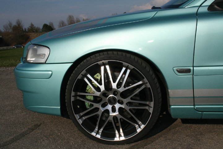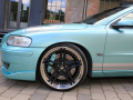 {1}Danach habe ich weitere Veränderungen vorgenommen.Ich habe alle Scheiben ab der A-Säule mit einer Folie getönt bzw. verspiegelt (15,9%). In den Nebelscheinwerfer wurden nachträglich zusätzliche LED-Standlichter verbaut. Die Wischerarme der Schweinwerferreinigungsanlage sowie die Bremssättel an der VA wurden in Wagenfarbe lackiert. Der V70R bekam das Design von HEICO-SPORTIV wie deren Concept-Fahrzeuge, und erhielt hier dann den Zusatz „HS7“.