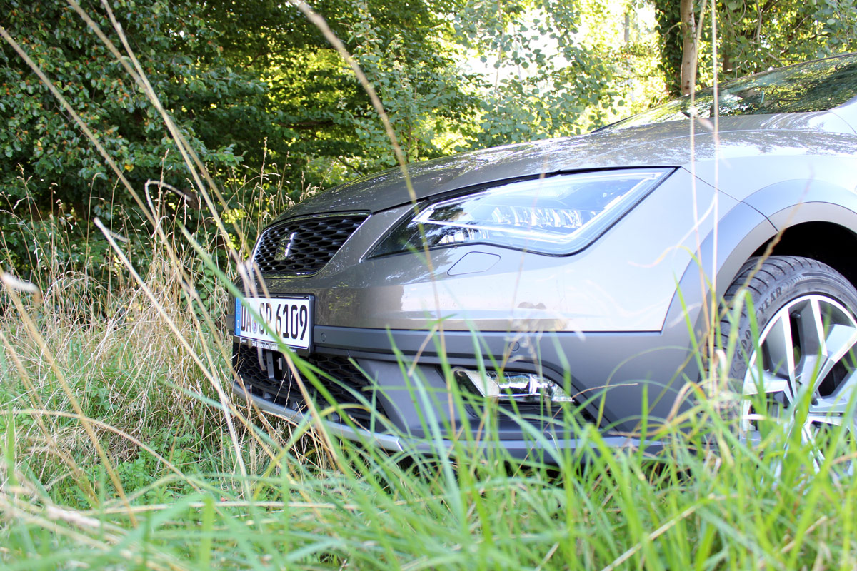 Nun also auch Seat. Wir stehen Nischenprodukten ja grundsätzlich immer etwas skeptisch gegenüber. Gerade höhergelegte Look-alike-Offroader – am besten noch ohne Allradantrieb, aber dafür mit „robusten“ unlackierten Plastikverkleidungen rund um – fanden wir immer etwas lächerlich. Doch wenn wir dann vor ihnen stehen, müssen wir konstatieren: es sieht verdammt nochmal nicht schlecht aus. Der Offroad-Look. Ob Audi Allroad, Volvo Cross Country, VW Alltrack oder Mercedes All Terrain – den Autos steht dieser kernigere Look meistens richtig gut.