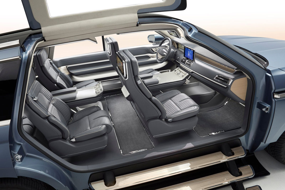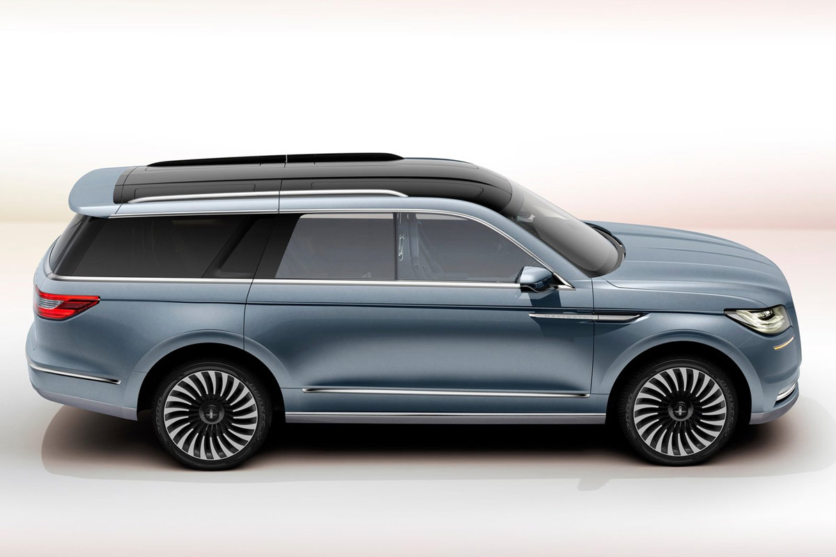 Der Bentley Bentayga ist die Krönung der SUV-Gilde? Noch! Denn die Ford-Nobelmarke Lincoln bringt 2017 den neuen Navigator (vierte Generation). Und der ist mit Fug und Recht als XXL-Luxus-SUV zu bezeichnen. Auf der New York Auto Show zeigen die Amis mit dem Lincoln Navigator Concept jetzt schon mal ein Ausblick auf die Linienführung des neuen Modells. Hingucker: Die monströsen Flügeltüren und die ausfahrbare Treppe mit drei Stufen. Beide dienen aber wohl nur dem Show-Effekt.