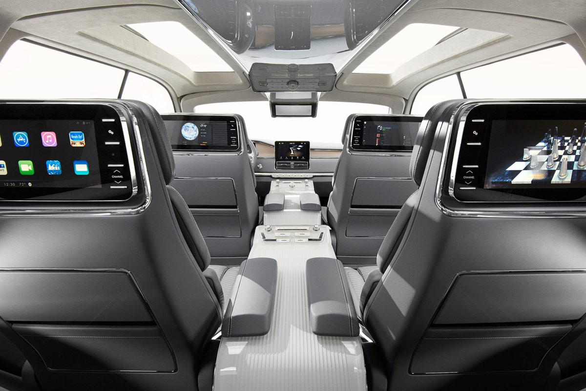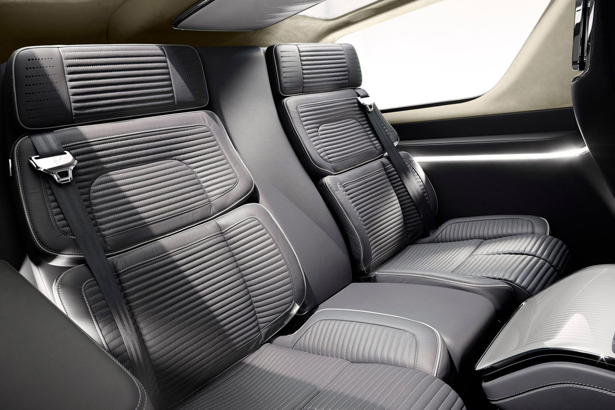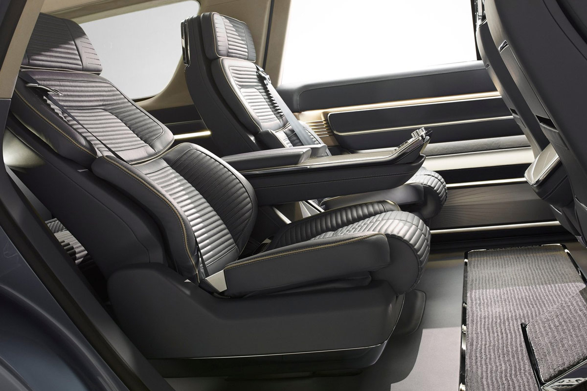 {1}Chancen auf den Einzug ins Serienmodell haben indes der verbaute 3,5-Liter-Turbo-V6 unter der Haube, der es im Concept-Car auf mehr als 400 PS bringen soll, sowie die reichhaltige Ausstattung mit jeder Menge Multimedia-Schischi (u.a. sechs große Monitore) und die sechs Einzelsitze. Und auch das dezente, kühle Interieur-Design können wir uns gut für das 2017er Serienmodell vorstellen.