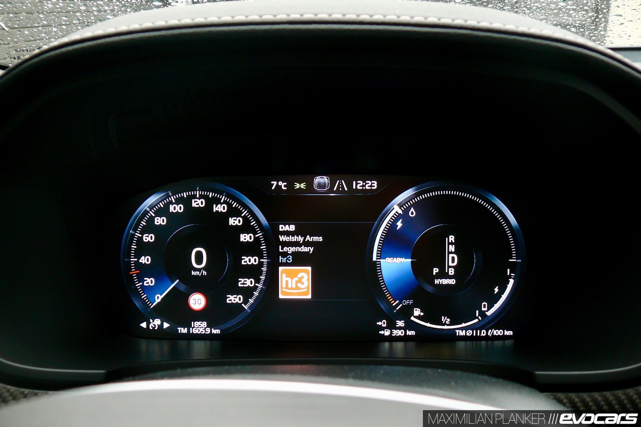 Im Alltagsbetrieb merkt man von dem Zusammenspiel der zwei Herzen wenig. Wie bereits erwähnt, gelingt das Anfahren und Rangieren im Hybridmodus stets rein elektrisch, erst bei mehr Gaseinsatz und höheren Geschwindigkeiten springt der Verbrenner ein. Dies tut er stets ruckfrei und sehr leise, wirkt im Vergleich sogar noch besser gedämmt als im V90 T5, sodass der Fahrer, sollte er nicht genau auf die Informationen im Mittendisplay achten, manchmal gar nicht weiß, welcher der beiden Antriebe nun aktiv ist. Schön gelöst: mittels schickem Wählhebel kann man die Rekuperationswirkung erhöhen, sodass auf Bergabfahrten kaum noch gebremst werden muss. Sie ist allerdings immer noch so schwach, dass wenigstens die Bremsleuchten nicht dauerhaft aufleuchten. Das wirkt sonst auf andere immer so, als könne man nicht fahren.