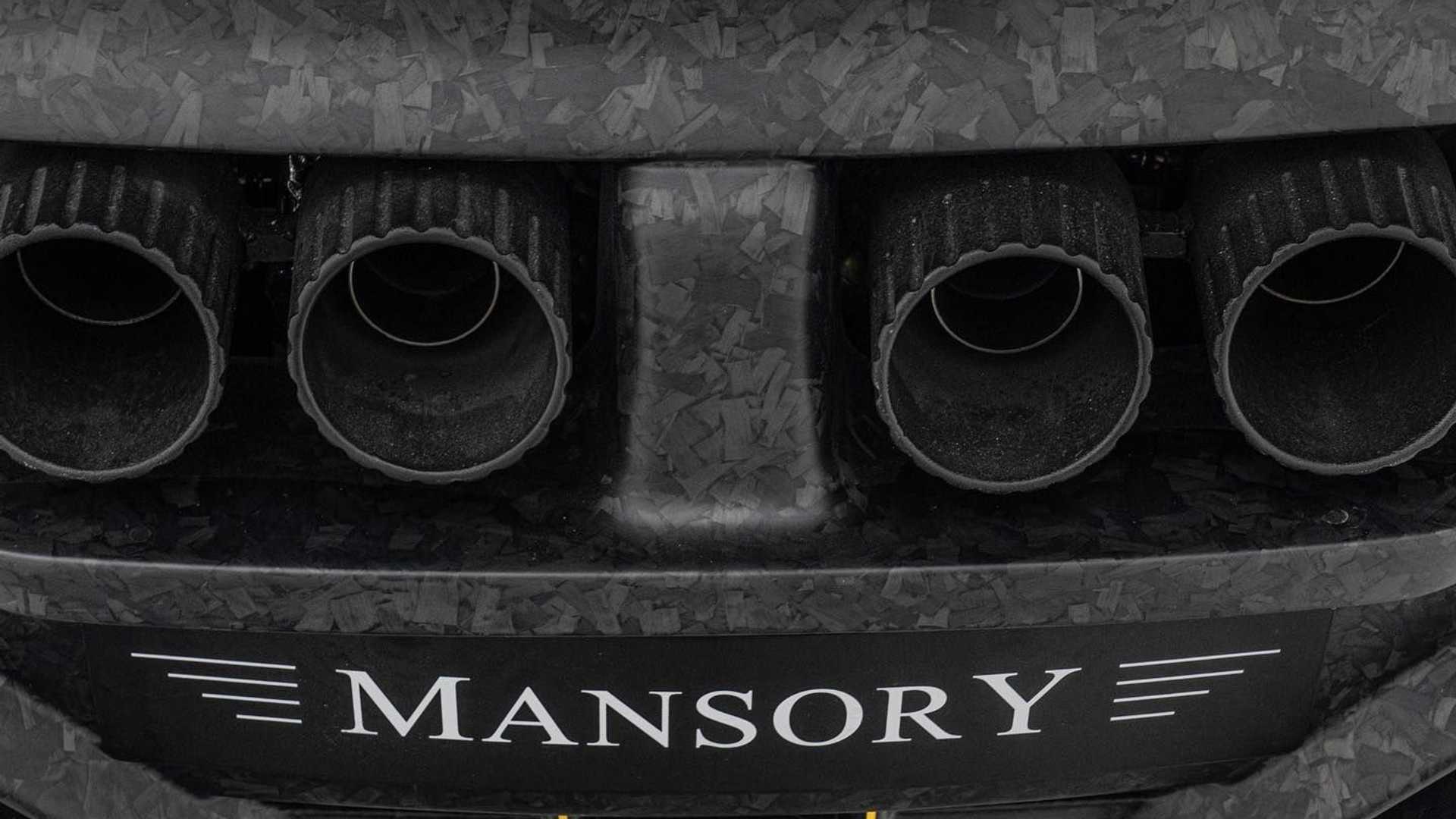 Am Heck verbaut Mansory eine neue Motorhaube, einen gewaltigen Flügel und einen auffälligen Diffusor. Wer den Blick vom Heckflügel abwenden kann, der bemerkt natürlich auch sofort den noch oben verlegten und nun vierflutigen Auspuff.