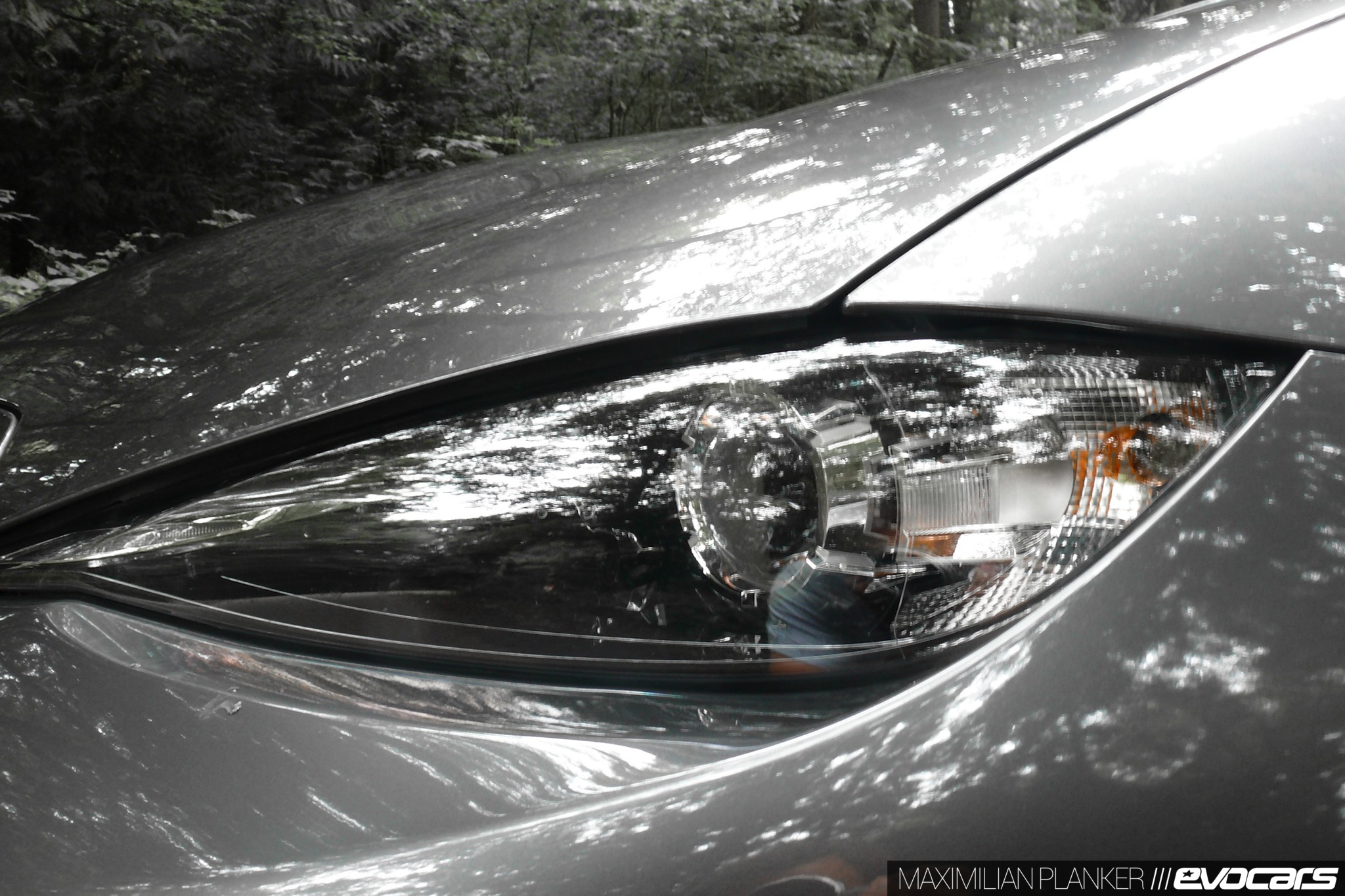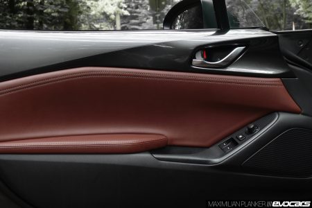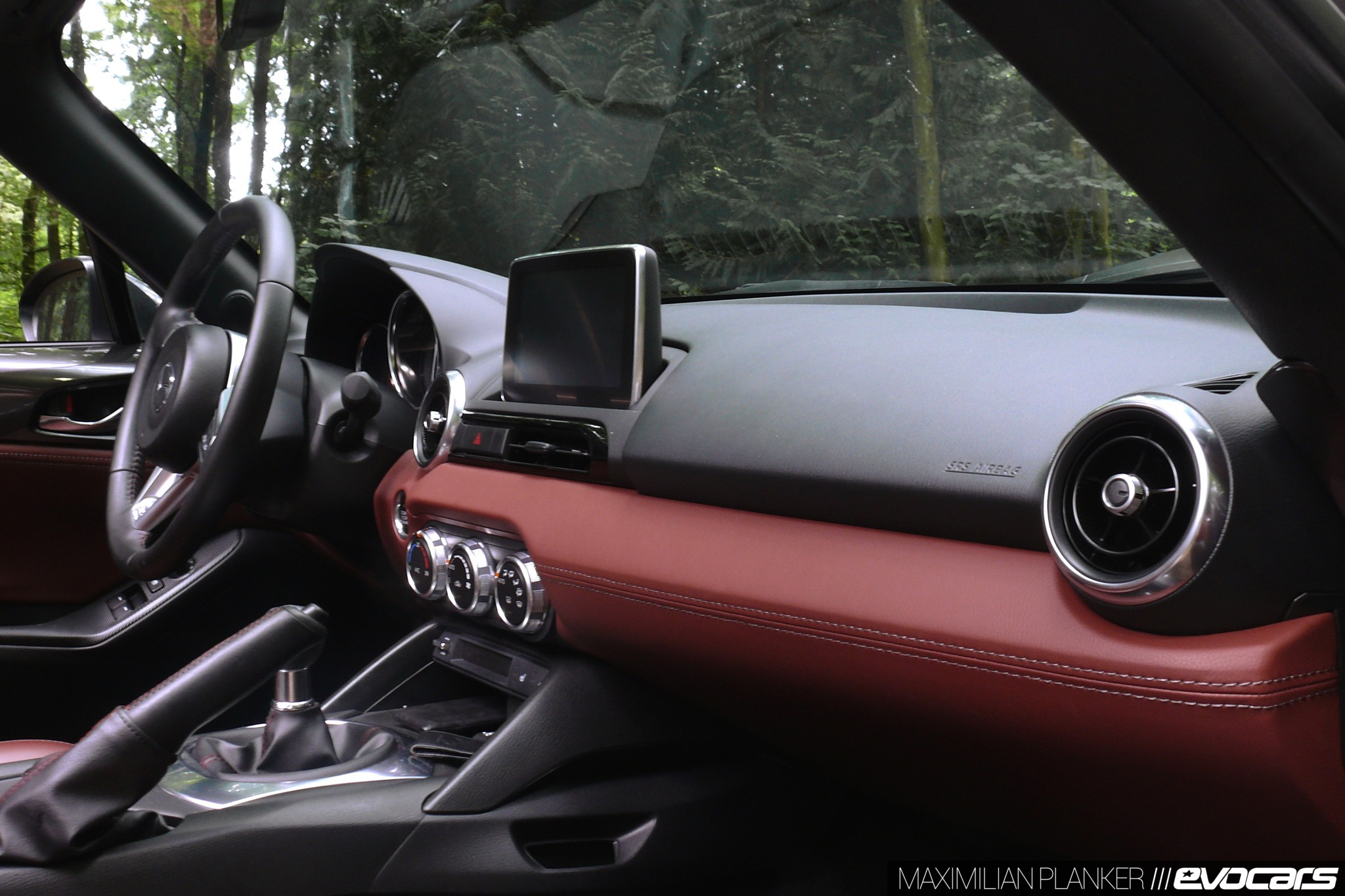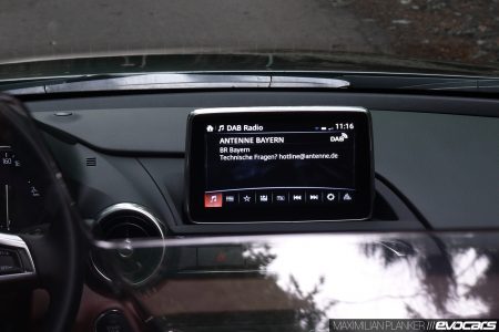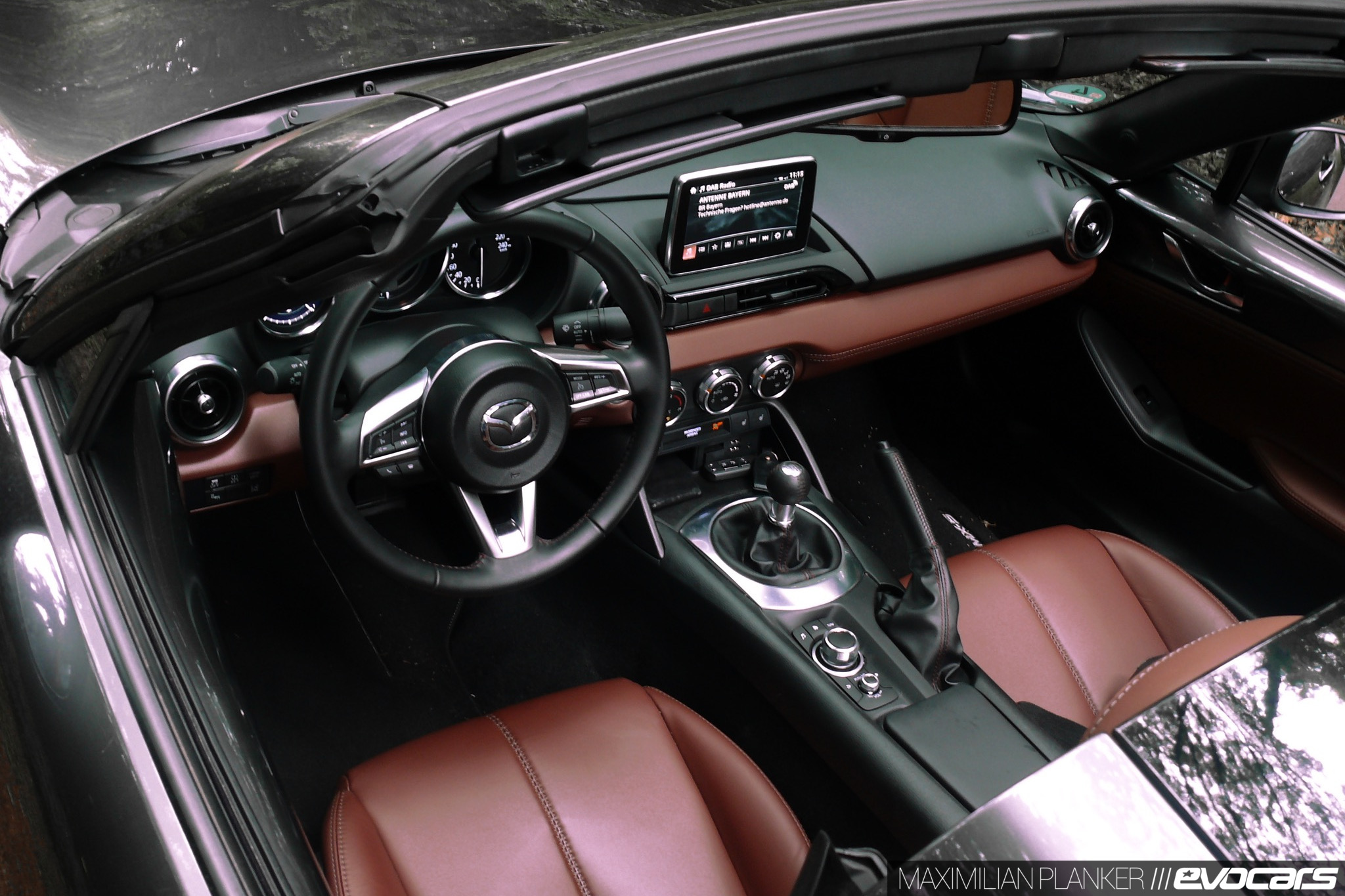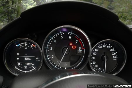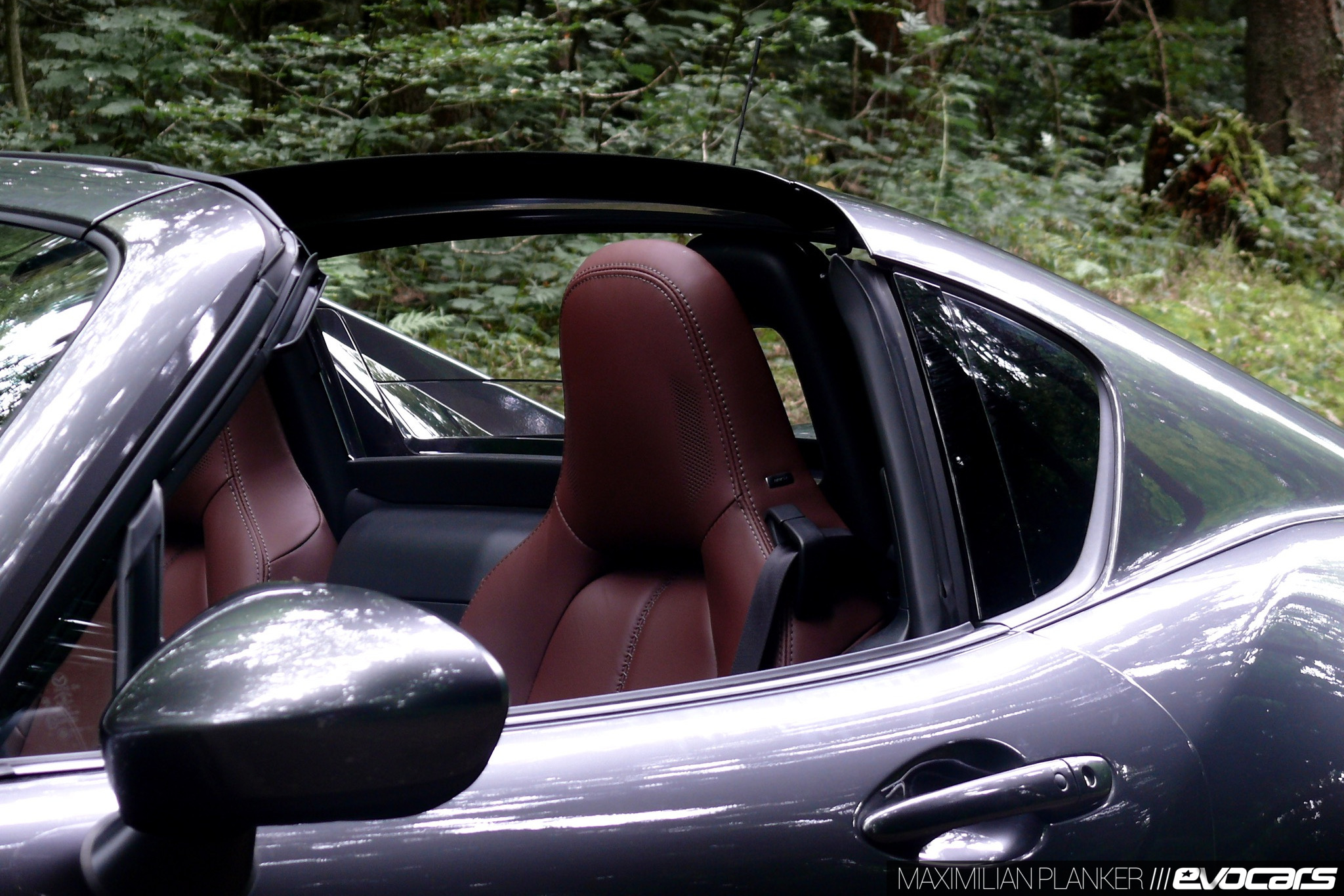 Doch so war mehr Zeit, die inneren Qualitäten des Mazda MX-5 RF zu erkunden. Er ist der Nachfolger des MX-5 mit festem Klappdach der Baureihe NC, geht aber optisch und auch in puncto Frischluftvergnügen andere Wege. Die überwiegend aus leichtem Aluminium gefertigte Dachkonstruktion verheißt abermals deutlich mehr Komfort als das verblüffend simple Stoffverdeck der Standardvariante. Und tatsächlich: Wind- oder gar Knarzgeräusche bei geschlossenem Dach sind Fremdwörter für den Japaner. Auch auf schlechtesten Straßen ist es von einer unerschütterlichen Qualität, was wir so nicht erwartet hätten. Da können sich manch andere „Premiumfahrzeuge“ eine dicke Scheibe vom Mazda abschneiden.