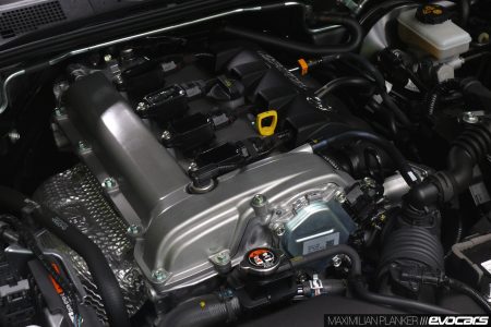 Im Durchzug hingegen bringen die rund 40 Kilogramm Mehrgewicht keine Nachteile mit sich. Die 160 PS und 200 Newtonmeter Drehmoment haben mit etwa 1,1 Tonnen Leergewicht ein leichtes Spiel und treiben den Targa-Mazda ausreichend flott voran. In knapp über sieben Sekunden erreicht man Landstraßentempo und auch die Ü-200-Höchstgeschwindigkeit lassen sich komfortabel ausreizen, was man jedoch aus nachfolgenden Gründen lieber mit geschlossenem Verdeck macht. Denn die Windverwirbelungen selbst lassen sich zwar auch bei hohen Geschwindigkeiten lediglich am Haupthaar feststellen und liegen somit im vollkommen akzeptablen Bereich. Dafür gleicht die Lautstärke der Winde, die gegen den „Bügel“ peitschen, der eines Orkans. Und das auch schon bei Autobahn-Richtgeschwindigkeit. Das kann der Roadster interessanterweise besser: hier gibt es zwar insgesamt mehr Wind, doch dafür ist der Geräuschpegel niedriger.