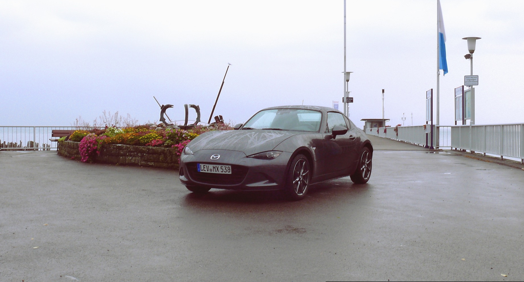 Der Wettergott meinte es in diesem Jahr nicht gut mit uns. Oder sagen wir es so: er meinte es nicht so gut mit uns wie im vergangenen Jahr, als wir während der zwei heißesten Wochen 2016 im Mazda MX-5 Roadster unterwegs waren. Nun dachte er sich wohl, der Zusatz RF stehe für Regenfalter und ließ es derart ergiebig auf den hübschen Festdachtarga prasseln, dass uns für Fotoaufnahmen mit geöffnetem Dachteil schlichtweg ein einziger Tag blieb.
