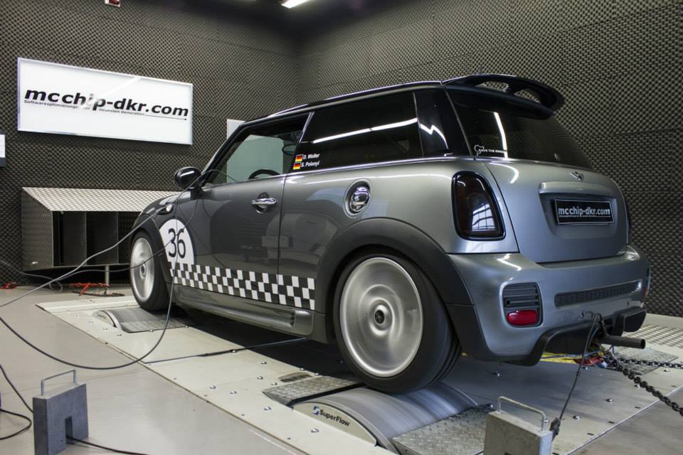 {werbung}Dieses Vorhaben unterstützt ab sofort auch Mcchip-DKR, die eine Leistungssteigerung auf 209 PS und 310 Nm Drehmoment für den Cooper S Motor (2006-2010) anbieten. Die Softwareanpassung wird in rund drei Stunden aufgespielt und ist immerhin für 34 zusätzliche PS und 70 Nm mehr Drehmoment gut. Inwieweit sich die Fahrleistungen von 7,1 Sekunden auf 100 km/h und 225 km/h Höchstgeschwindigkeit verbessern, verrät Mcchip zwar nicht, sie sollten aber mindestens auf dem Niveau der aktuellen Generation liegen. Preise für die Leistungssteigerung gibt es wie immer auf Anfrage beim Tuner.
