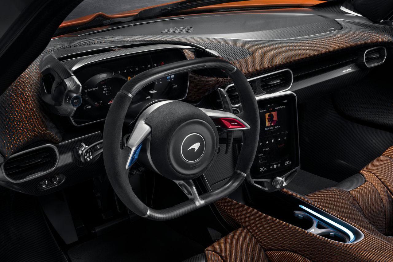 Getreu dem McLaren-Supercar-Prinzip einer rein fahrerorientierten Schnittstelle sind die einzigen beiden Tasten am Lenkrad die Boost- und McLaren Aero Deployment-Bedienelemente. Inspiriert von der Formel 1 wurden diese ergonomisch so gestaltet, dass sie leicht zu erreichen und zu aktivieren sind, indem der Fahrer seine Daumen und nicht seine Hände vom Lenkrad nimmt.