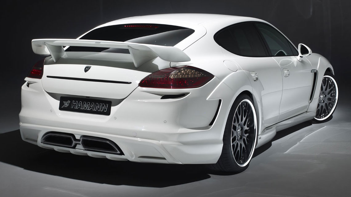 Dabei ist es mehr als erstaunlich, dass der mit solch einem ausladenden Bodykit bedachte Wagen tatsächlich schneller ist als der sicherlich windschlüpfrigere Serien-Panamera (100 PS mehr hin oder her). Das Bodykit umfasst eine komplett neue Front inkl. Tagfahrleuchten, eine neue Motorhaube, breitere Kotflügel (insgesamt plus 60 Millimeter), neue Seiteschweller sowie einen Heckdiffusor und einen gewaltigen feststehenden Heckflügel. Natürlich fallen auch die großen, eckigen Endrohre ins Auge und bescheinigen dem Fahrer ein gesundes Selbstbewusstsein.