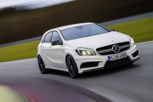 Aber es ist nicht das Einzige, was am neuen Mercedes A 45 AMG neu ist und mit den bekannten Traditionen der Schwaben bricht. Denn das kleinste High-Performance Fahrzeug von AMG hat zwar keinen 4,5-Liter-Motor unter der Haube, aber immerhin stolze 450 Newtonmeter Drehmoment. Erreicht wird dieser Wert von einem neu entwickelten Zweiliter-Vierzylinder mit Turboaufladung. Mit einer Leistung von 360 PS ist das Triebwerk der stärkste Serien-Vierzylindermotor der Welt und hat damit keine Mühe, den A 45 AMG in 4,6 Sekunden bis Tempo 100 und weiter bis zu abgeriegelten 250 km/h Topspeed zu schießen.
