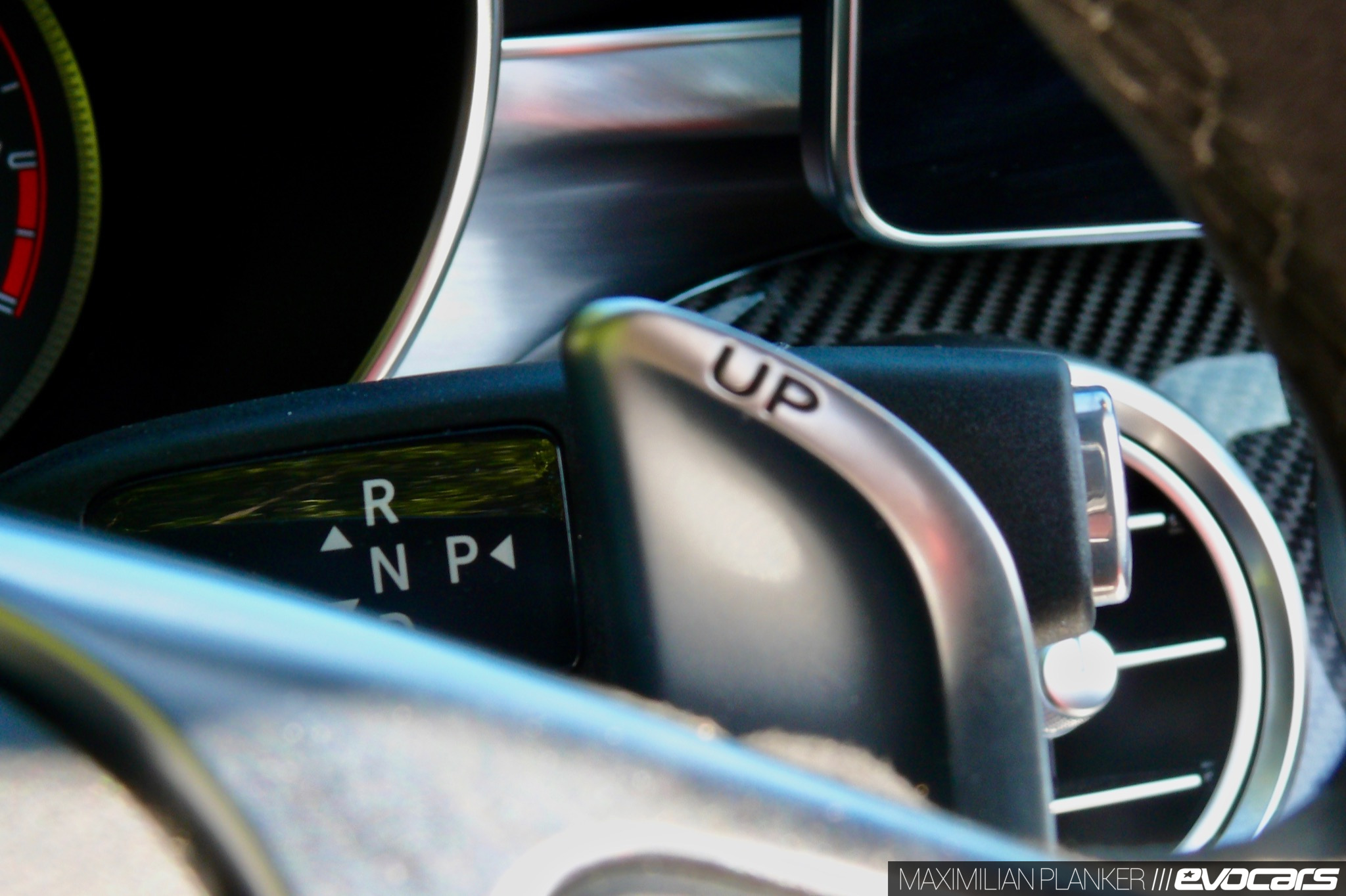 Man muss sich – wenn man wirklich zügig unterwegs sein möchte – allerdings ein wenig in die verschiedenen Fahrmodi einarbeiten, um eine für sich passende Einstellung zu finden. Denn ein Problem – und das sagen wir regelmäßig bei Mercedes-AMG – liegt in der Koppelung von Motor- und Getriebesteuerung. Stellt man den „Antrieb“ auf Race, in dem die Gasannahme und Sound am schärfsten sind und somit am meisten Spaß machen, fährt auch das Siebengang-Sportshift-Getriebe im Race-Modus. Schaltvorgänge finden sodann auch beim normalen Anfahren von der städtischen Ampel andauernd erst oberhalb von 3.000 Umdrehungen pro Minute statt. Für den Dauerbetrieb in „Race“ sollte deshalb das Getriebe im sehr guten „Manuell“-Modus über die beiden Schaltwippen genutzt werden. Lediglich im Comfort-Modus stellte sich das Schaltverhalten ein, wie man es von Mercedes-Benz gewohnt ist: verschliffene, ruhige und frühe Schaltvorgänge, wie in der guten alten Zeit eben. Doch dann passten uns Sound und Gasannahme eben nicht mehr so ganz.