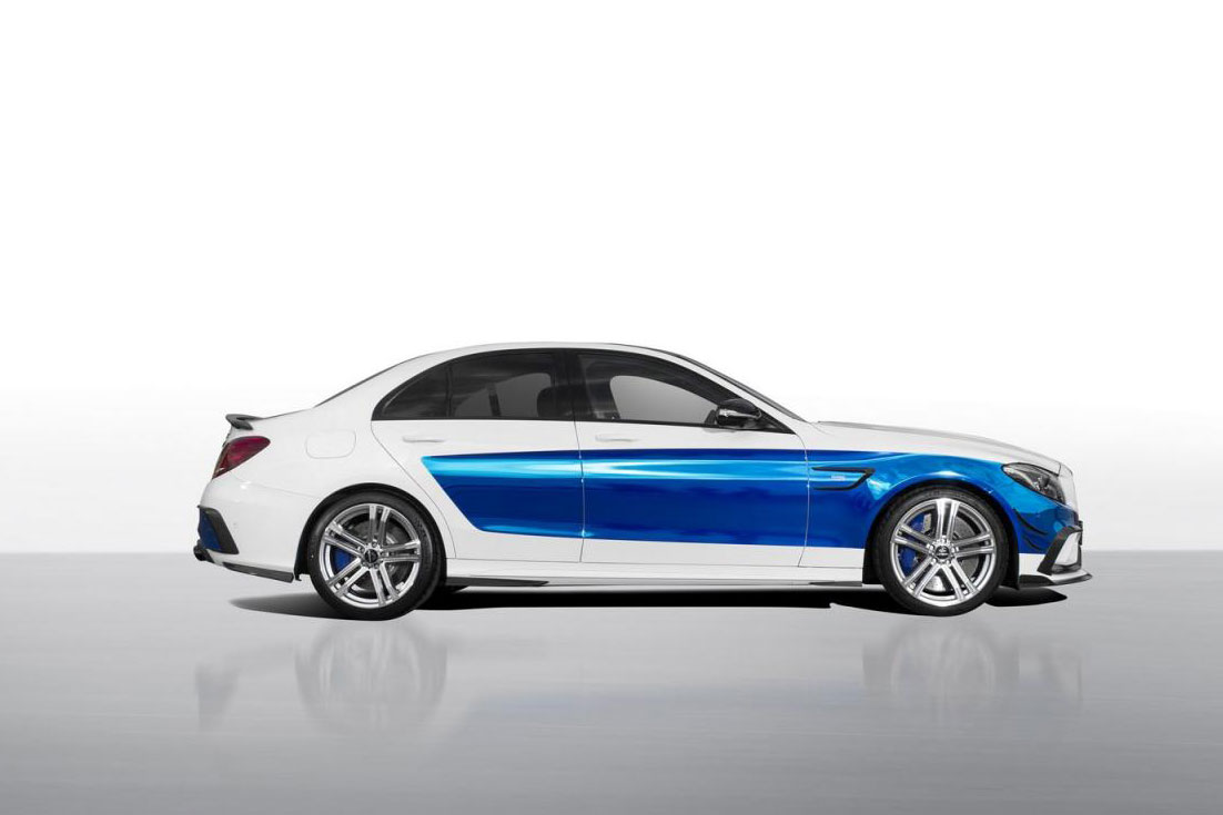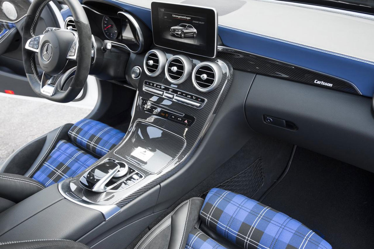 Muntere 605 PS und 820 Nm soll dieser Mercedes AMG C 63 von Tuner Carlsson liefern. Feine Sache. Und auch die Beschleunigung von 3,8 Sekunden auf Tempo 100, die der gepushte Vierliter-V8-Biturbo unter der Haube ermöglichen soll, gefällt uns sehr. Aber was soll denn bitte diese Kirmes-Bemalung innen und außen? Vielleicht soll der extrovertierte, bunte Auftritt dafür sorgen, dass die Limousine auf der IAA, wo sie gerade zu begutachten ist, nicht untergeht. Meinetwegen. Wir stellen uns trotzdem lieber vor, wie die ebenfalls erhältlichen Anbauteile aus Kohlefaserlaminat in Wagenfarbe aussehen und das blaue Karomuster im Innenraum denken wir uns auch mal weg.
