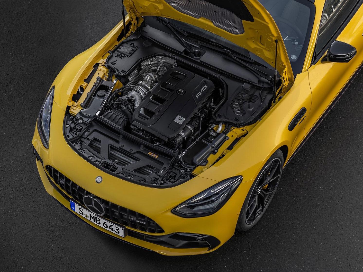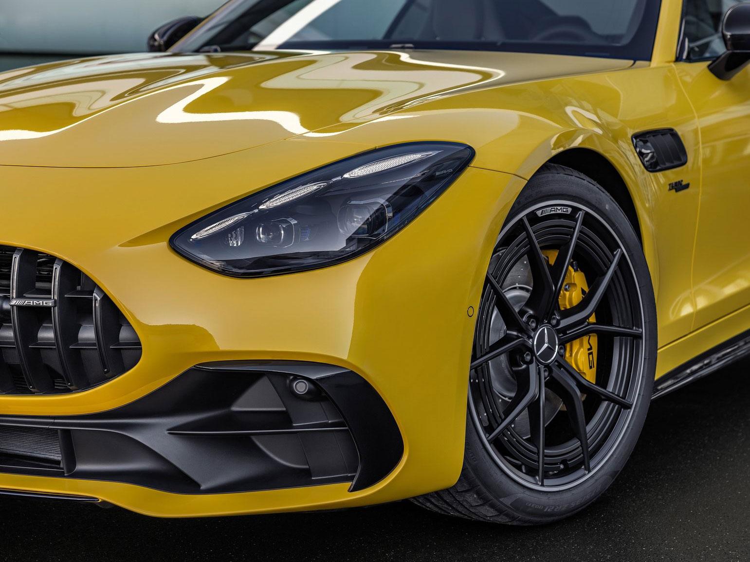 Der AMG GT 43 wird standardmäßig mit einem Stahlfederfahrwerk geliefert. Optional kann die neueste Generation der adaptiven Dämpferverstellung gewählt werden. Dabei analysiert das Steuergerät der Fahrwerksregelung kontinuierlich die Daten und passt die Dämpfungskraft für jedes Rad in wenigen Millisekunden entsprechend der jeweiligen Fahrsituation an.