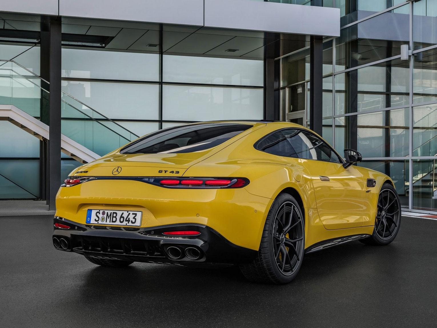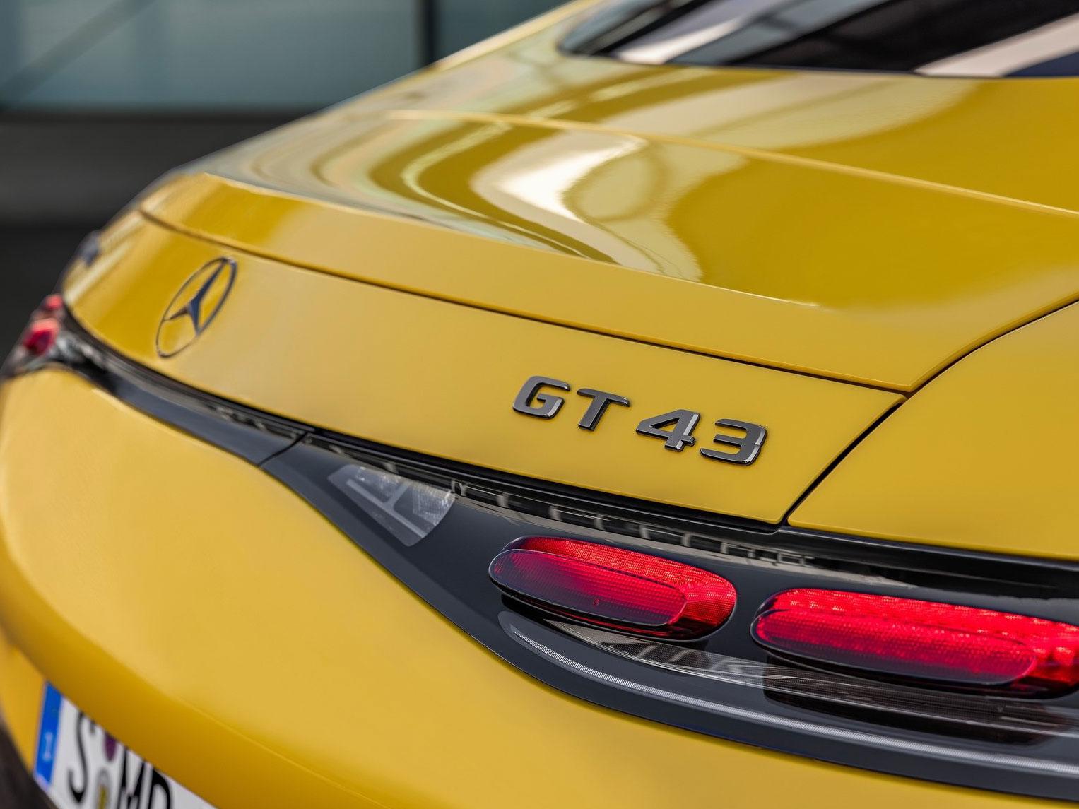 Die äußerlichen Differenzen zwischen dem GT 43 und seinem größeren Pendant sind zwar subtil, aber dennoch spürbar. Der AMG behält sein kraftvolles Coupé-Design bei, jedoch wurden einige Nuancen leicht überarbeitet. Zum Beispiel wurde die Frontschürze des GT 43 überarbeitet, ebenso wie die Lufteinlässe hinter den Vorderrädern. Am Heck wurden runde Endrohre integriert, wobei ihre Anzahl unverändert bei vier bleibt.