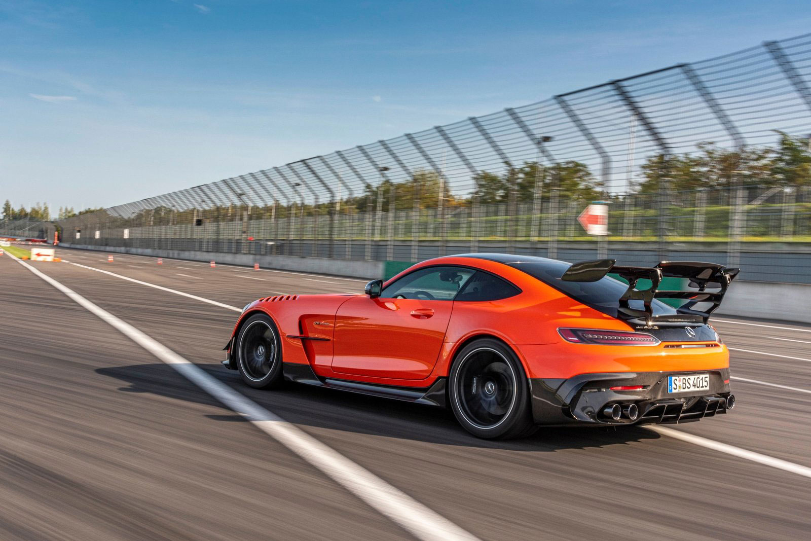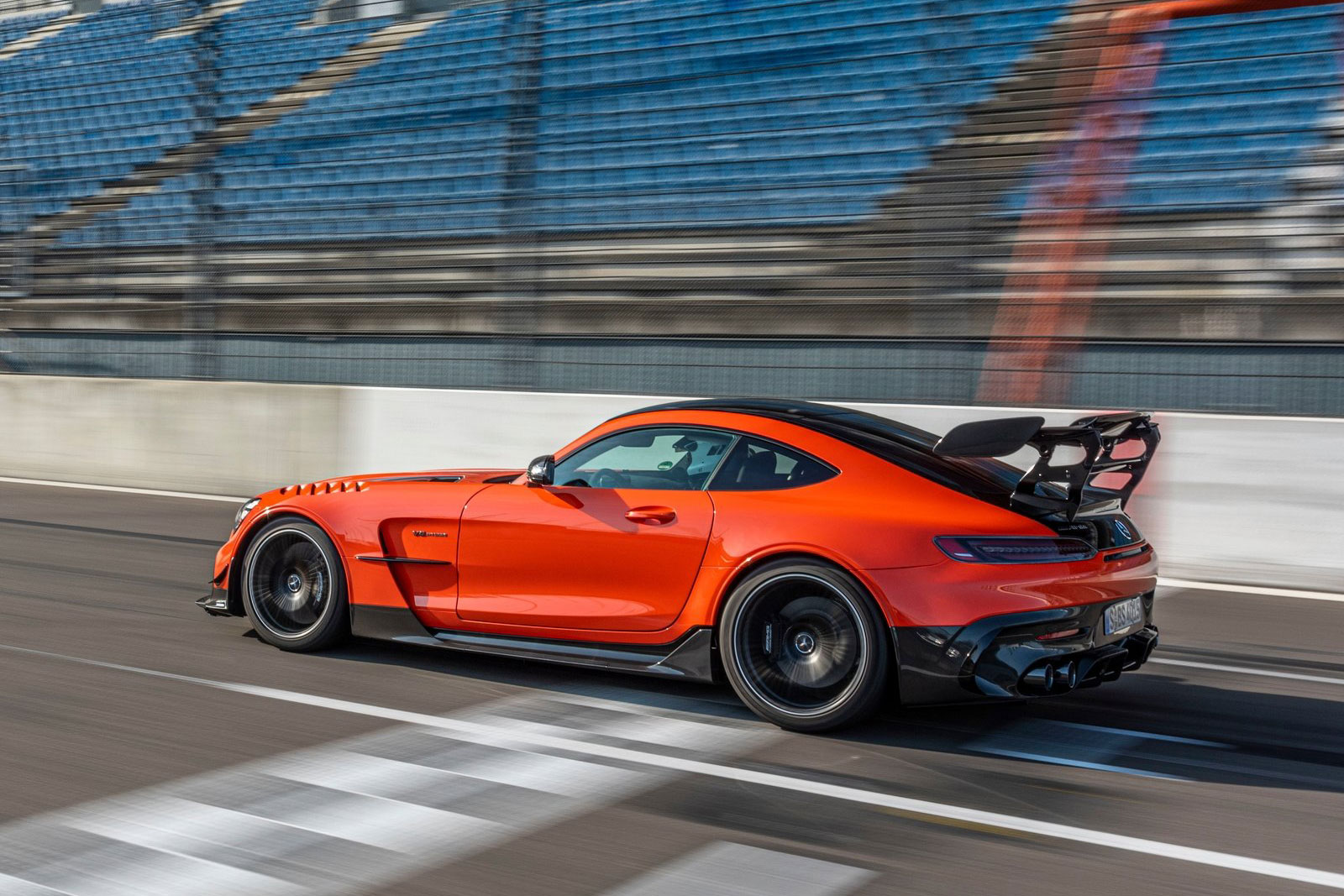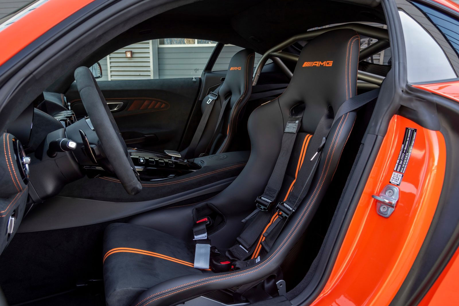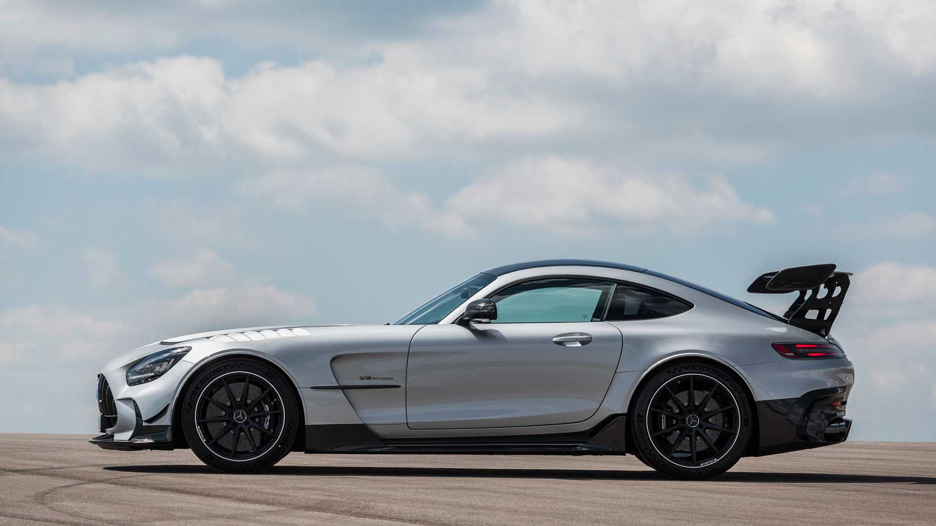 Auch sonst schreit im Flügel-GT alles nach Rennwagen: Carbon allerorten, Dünnglasscheiben, Schraubfahrwerk mit Verstelldämpfung. Schalensitze sind ebenso serienmäßig wie eine zigfach einstellbare Traktionskontrolle. Besonderes Schmankerl: der Mercedes-AMG GT Black Series kommt mit zwei verschiedenen Reifenmischungen.
