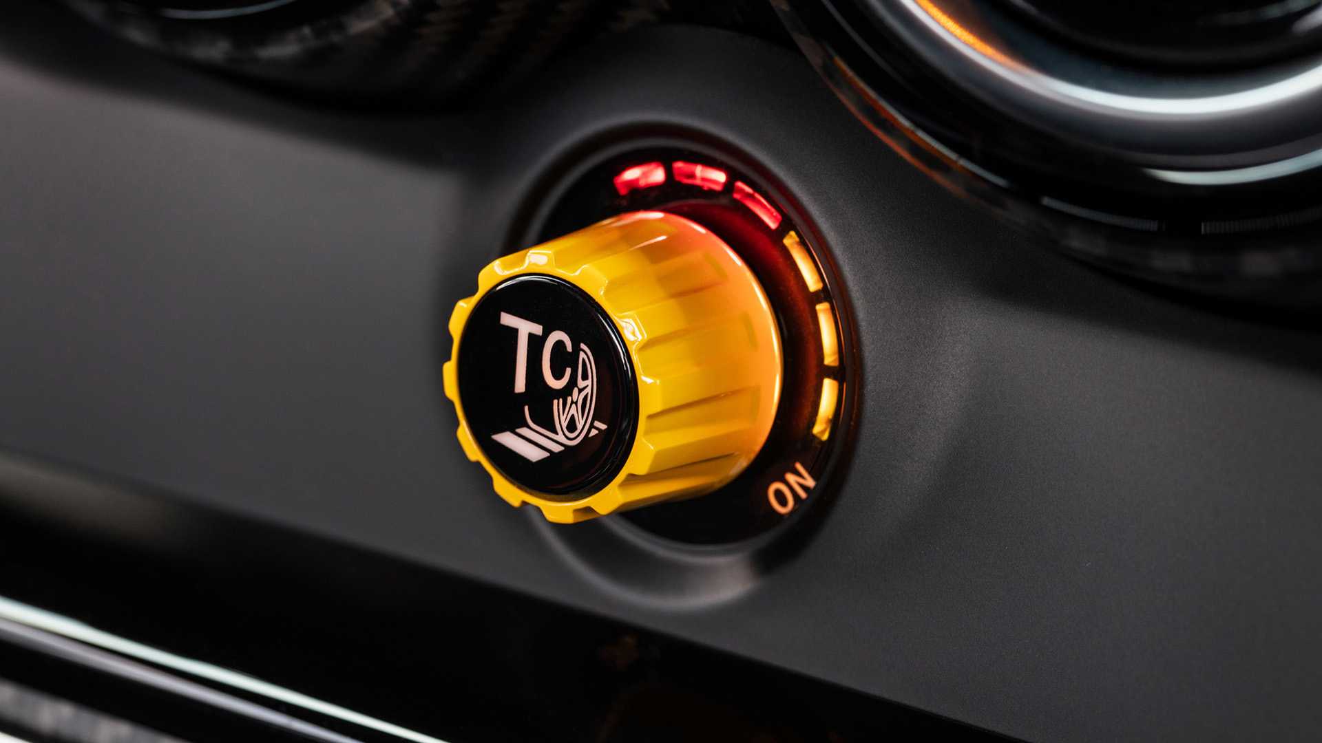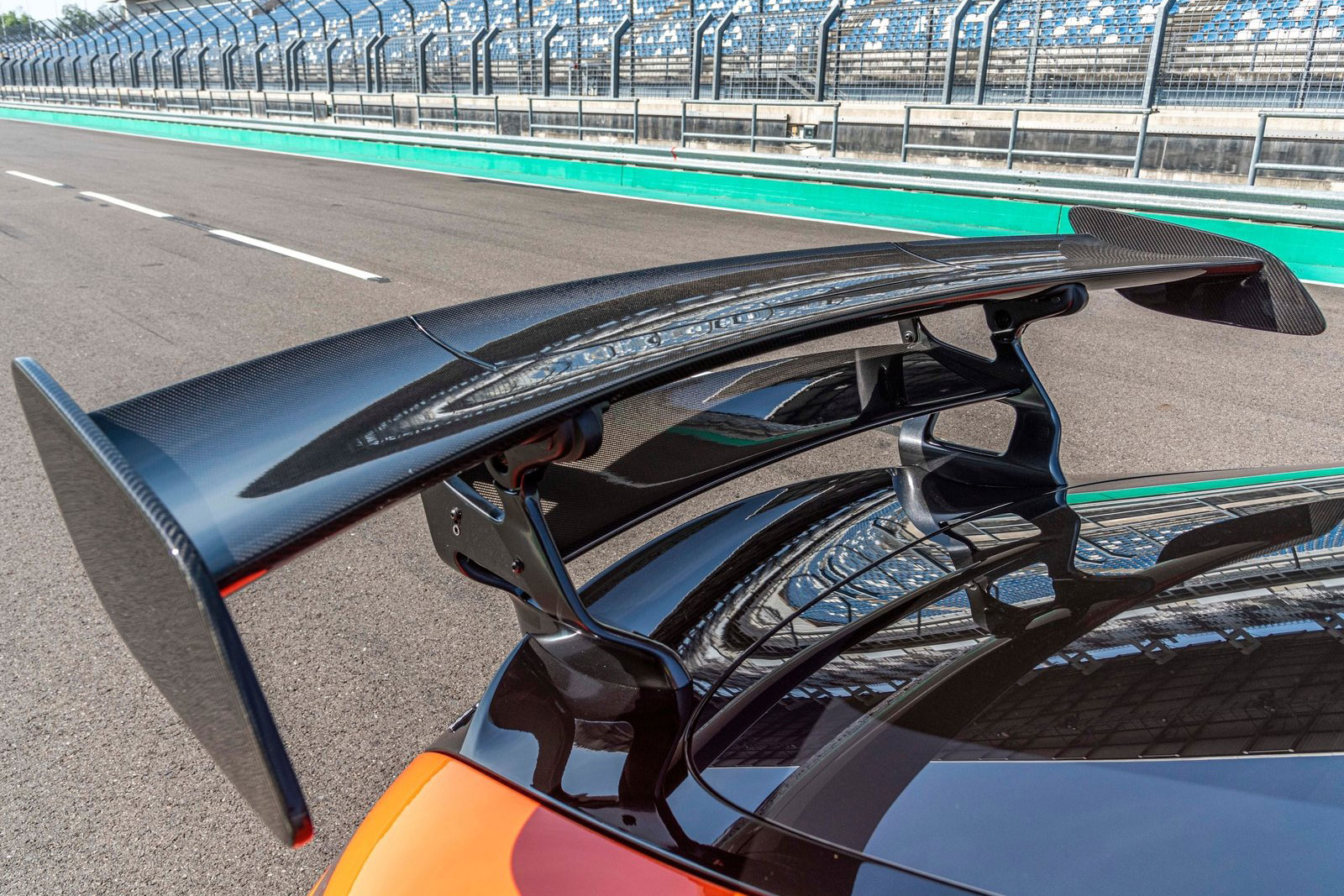 Das mächtige Flügelwerk ist sogar aktiv. Ein kleiner Flap zwischen den Aufstellern lässt sich je nach Tempo und Fahrmodus elektronisch ansteuern. So sorgt er auf der Geraden für maximales Tempo und beim Bremsen und in Kurven für beste Stabilität. In voller Anstellung summiert sich der Abtrieb auf 400 kg bei 250 km/h.