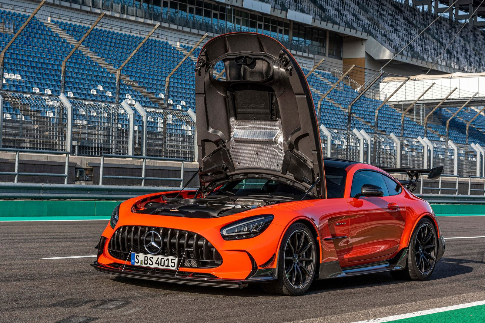 Bei der Fülle an Varianten und Kürzeln kann man im Modellprogramm des sportlichsten AMGs schnell den Überblick verlieren. Doch der Mercedes-AMG GT Black Series macht unmissverständlich klar: hier kommt der Platzhirsch. Nicht nur wegen des mächtigen Flügelgeweihs am Heck, sondern vor allem wegen seines schwarzen Gürtels.