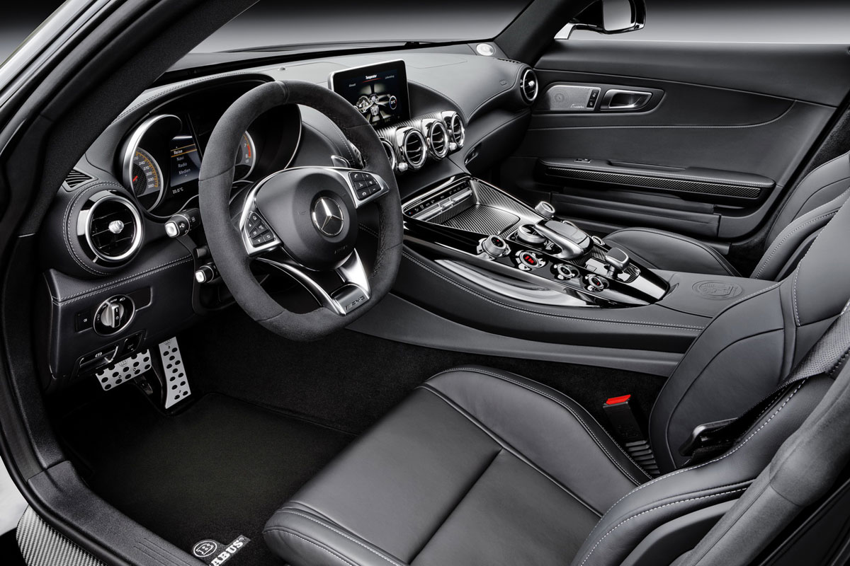 Und natürlich hat Brabus auch jede Menge Carbon-Anbauteile für den Mercedes AMG GT im Programm. Zu haben sind ein neuer Frontspoiler, Seitenschweller, ein fester Heckflügel sowie ein Heckdiffusor. Außerdem bekamen die seitlichen Luftauslässe in den vorderen Kotflügeln etwas Carbon-Deko ab. Alle Anbauteile können entweder in glänzend oder matt, in Wagenfarbe oder einer Kontrastfarbe geordert werden.