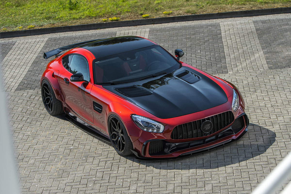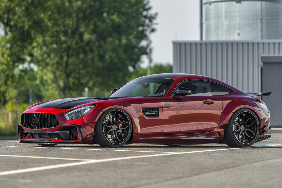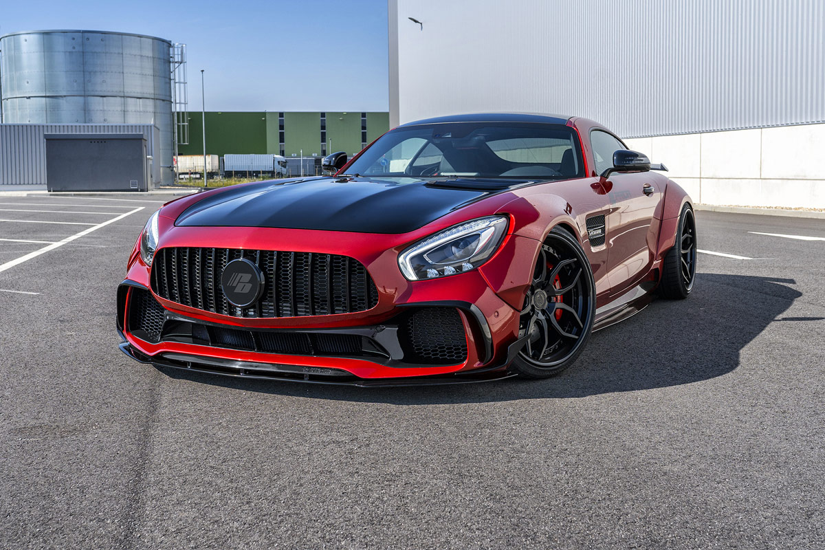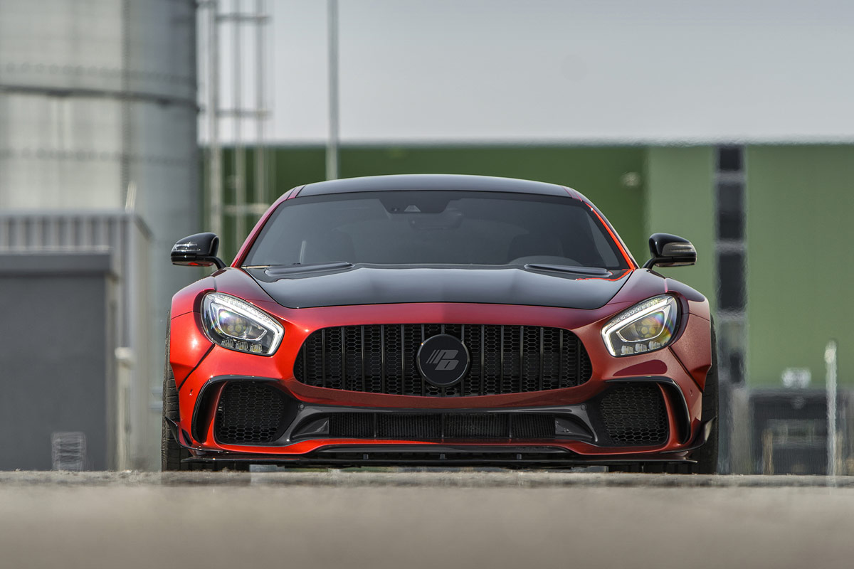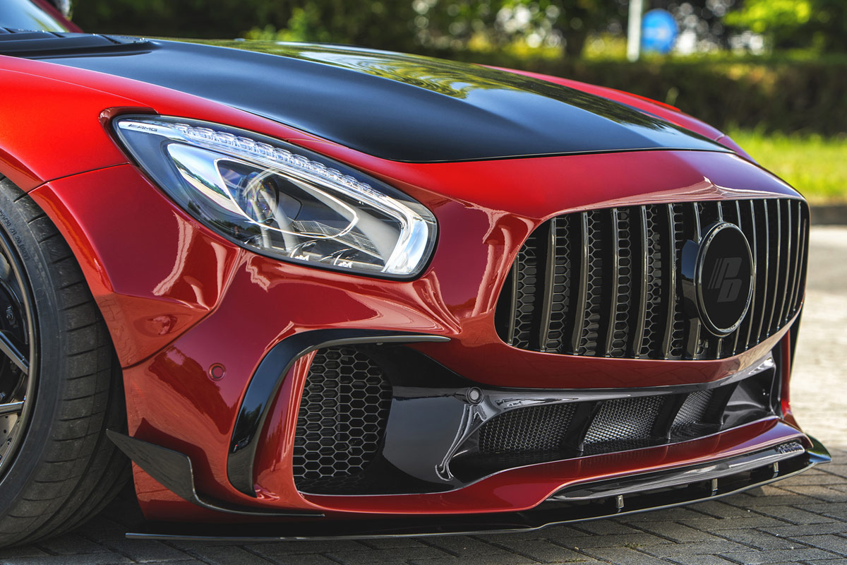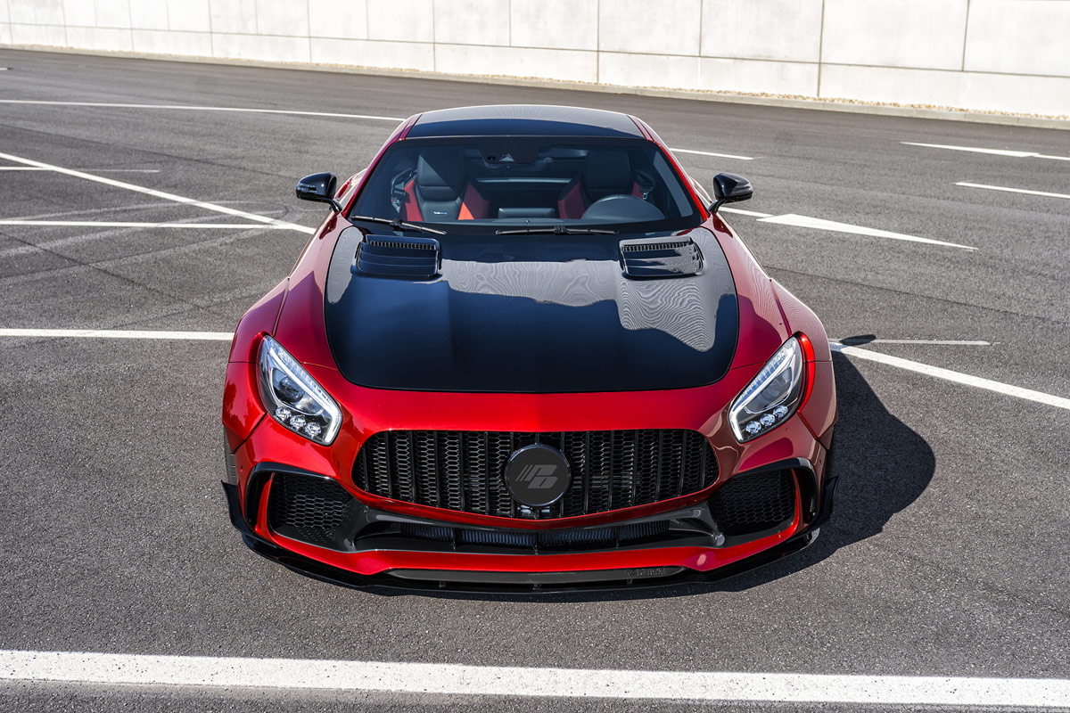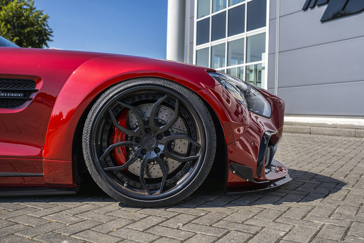 {1}Das neue Bodykit besteht aus Karosserie-Verbreiterungen an Vorder- und Hinterachse, neuen Seitenschwellern und kompletten Front- und Heckschürzen – vorne mit Spoilerlippe und Cupwings, hinten mit Diffusor und Cupwings. Eine Motorhaube und der mehrteilige, feststehende Heckspoiler runden das Paket ab. Produziert wird der Bodykit auf Wunsch komplett aus Carbon. Zwingend notwendig ist bei derart vergrößerten Rad- kästen ferner ein neuer Felgensatz: Der AMG steht auf geschmiedeten Prior Design PD3Forged-Rädern mit fünf Doppelspeichen. Die Dimensionen der Dreiteiler betragen 9,5×20 und 12,5×21 Zoll, die Continental- Bereifung misst 245/30 ZR20 und 305/25 ZR21.