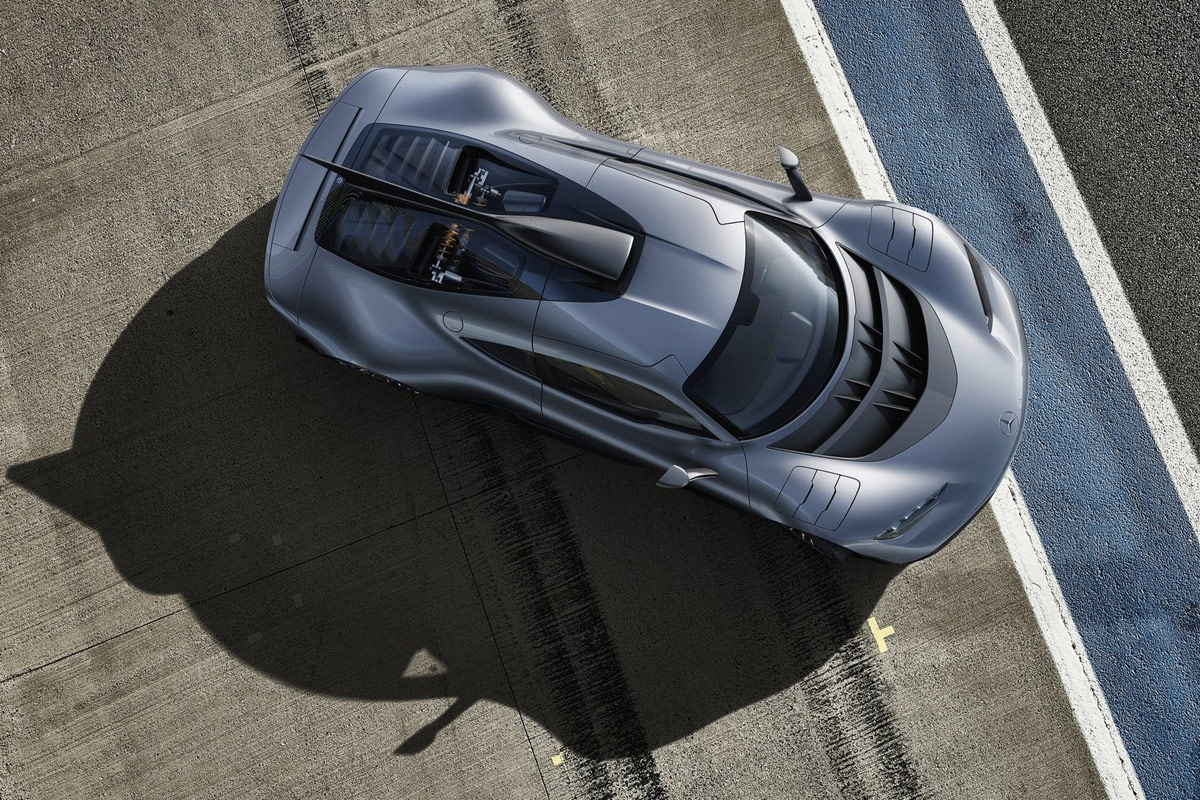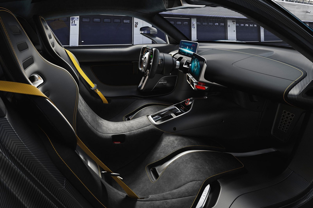 Na, bereit für noch ein paar weitere Fakten? Nun denn: Um die hohen Drehzahlen zu ermöglichen kommen beim „Motörchen“ pneumatische statt mechanische Ventilfedern zum Einsatz. Sie werden von vier oben liegenden Nockenwellen angetrieben, die wiederrum von Stirnrädern angetrieben werden. Betankt werden kann der Project One mit normalem Super-plus-Sprit und nach 50.000 Kilometern wird dem Motor die erste Revision verordnet.