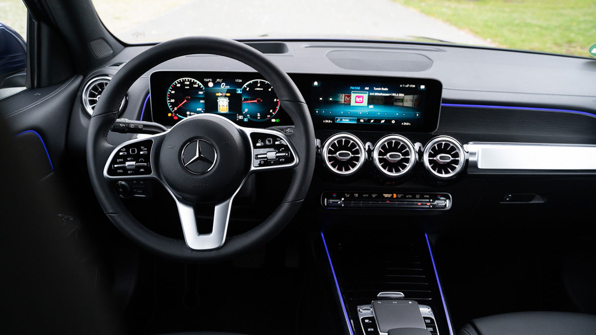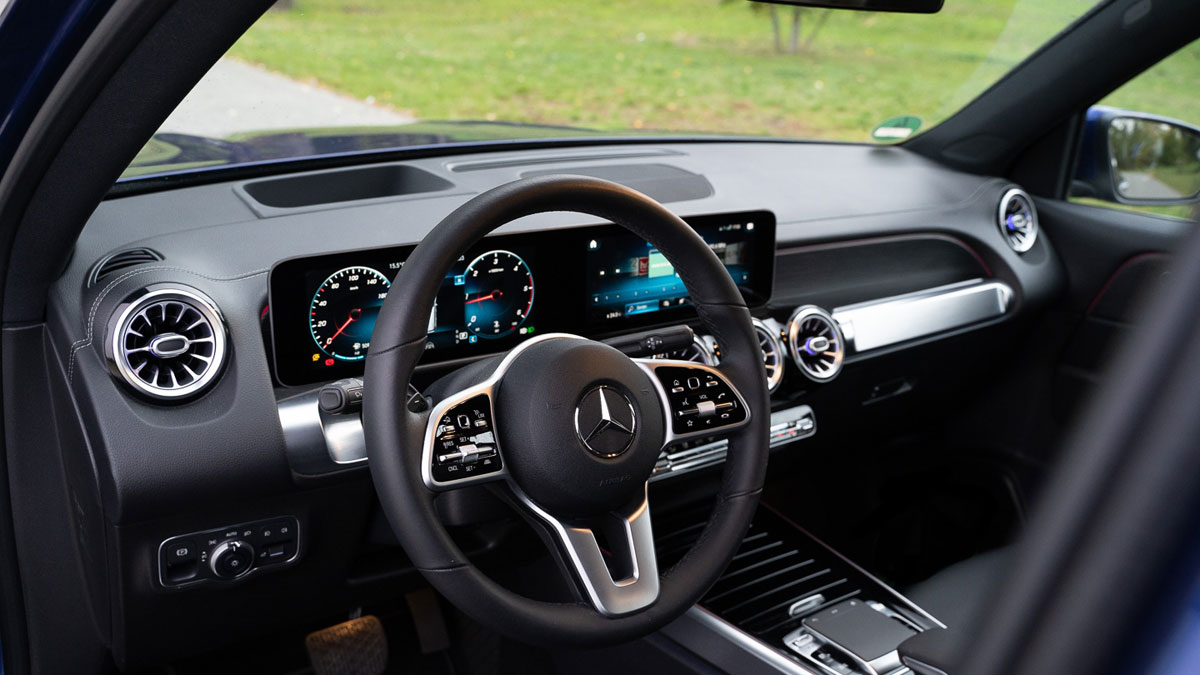 Das wohl größte technische Highlight des GLB 200d ist, das er sich wie ein klassischer Mercedes anfühlt. Solide, bequem und unaufgeregt. Dabei verzichtet das Fahrwerk auf Luftfederung und andere Tricks wie etwa Hinterachslenkung oder aktive Stabilisatoren. Gegen Aufpreis gibt es empfehlenswerte adaptive Dämpfer, die besonders im Comfort-Modus gefallen.